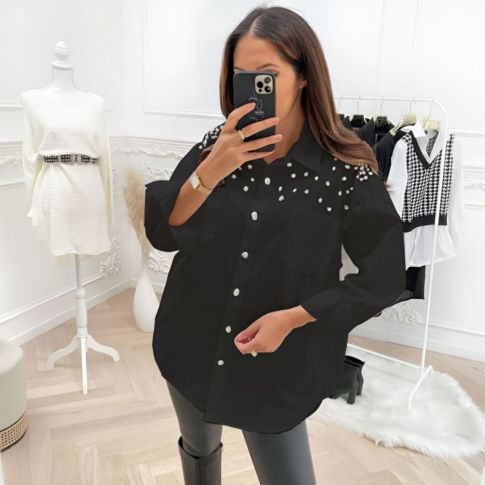113581 TOPTAN SİYAH GÖMLEK