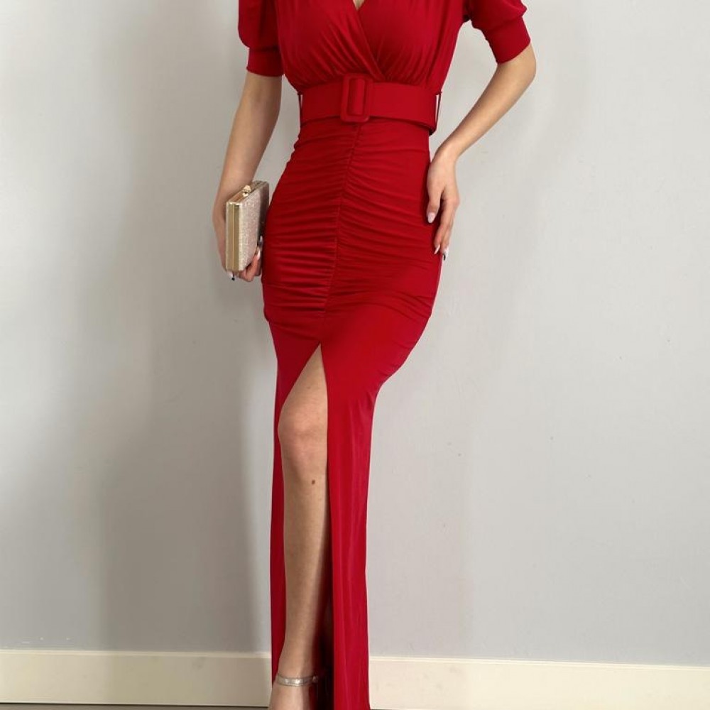 YENİ EKLENENLER: 154121 TOPTAN KIRMIZI ELBİSE