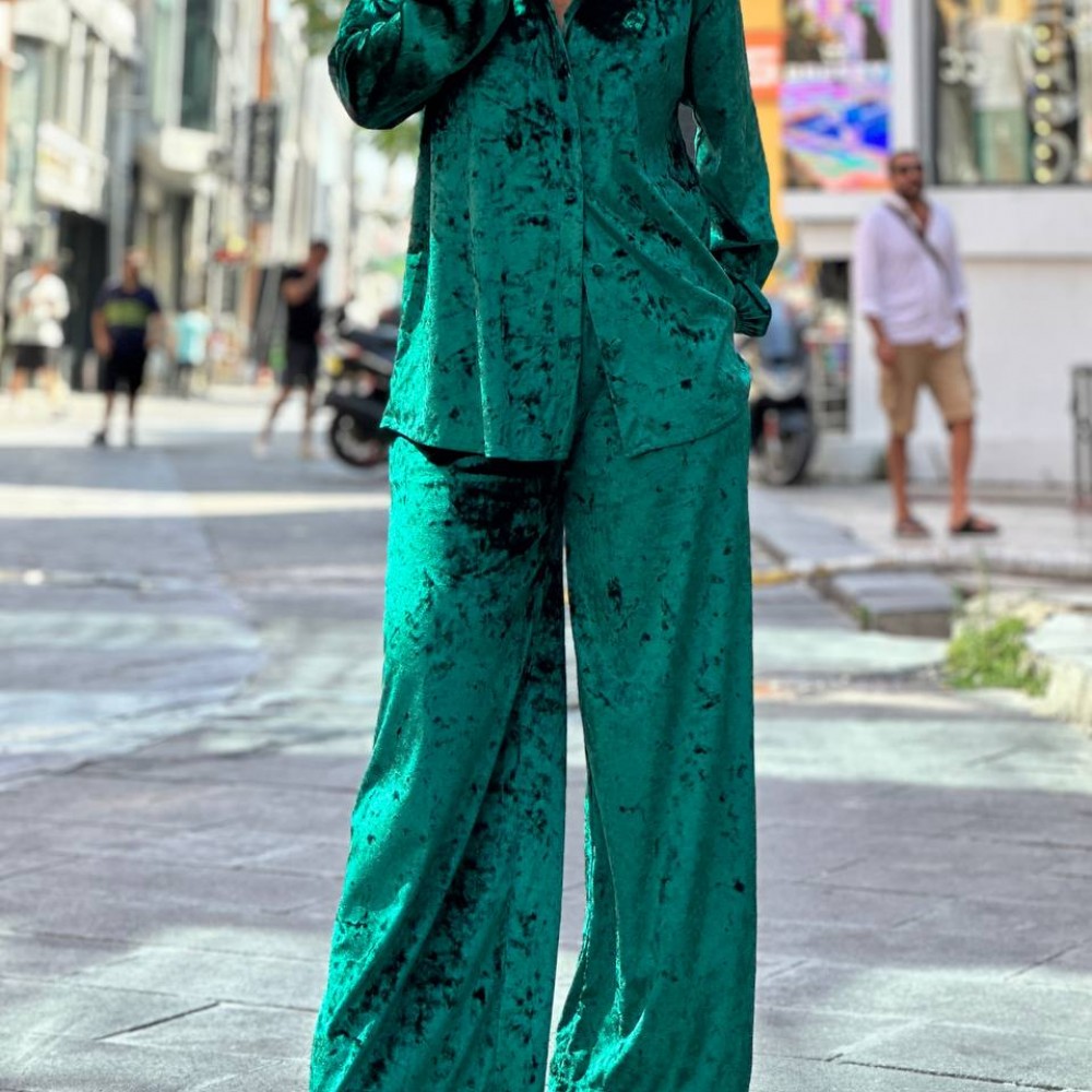 176103 TOPTAN ZÜMRÜT YEŞİL PANTOLON TAKIM