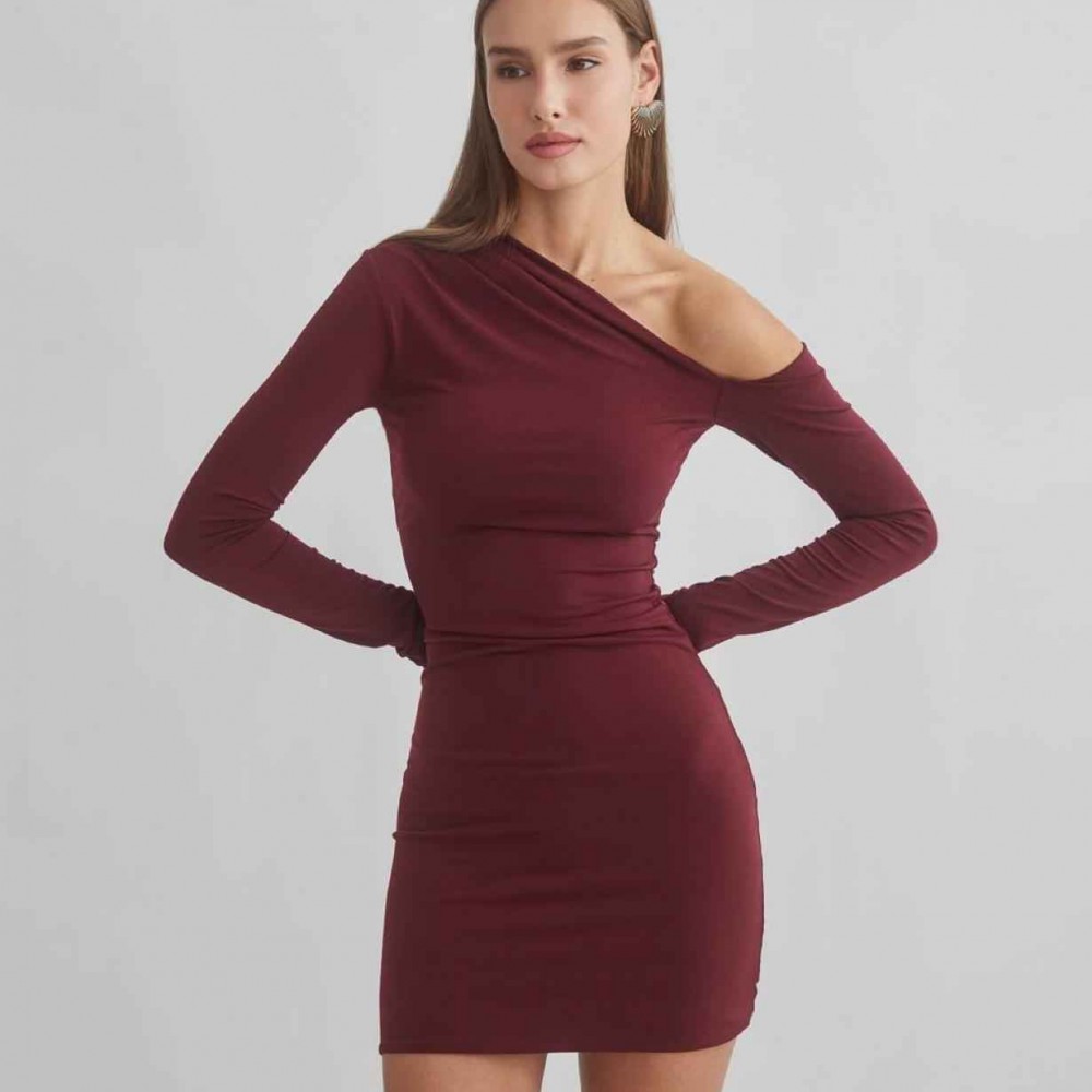 204224 TOPTAN BORDO ELBİSE