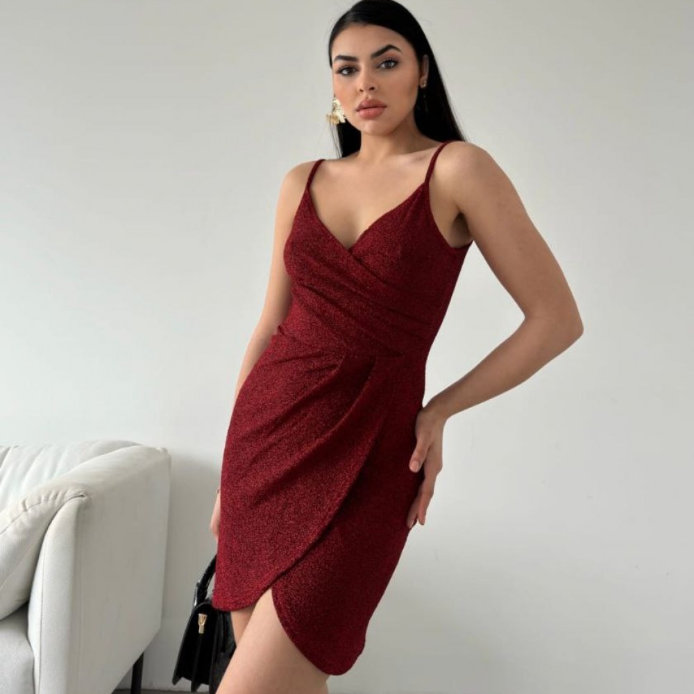 210236 TOPTAN BORDO ELBİSE