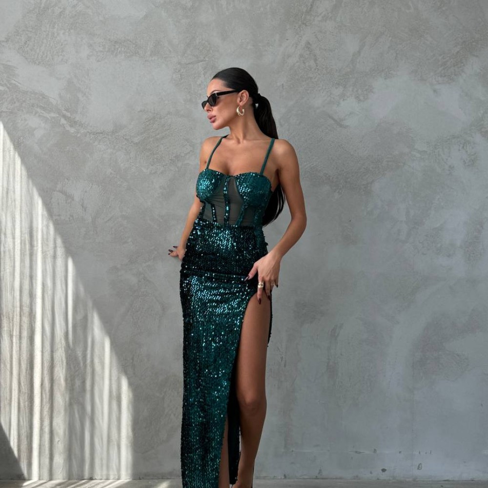 213854 TOPTAN ZÜMRÜT YEŞİL ABİYE