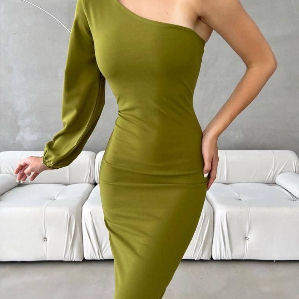 214203 TOPTAN FISTIK YEŞİLİ ELBİSE