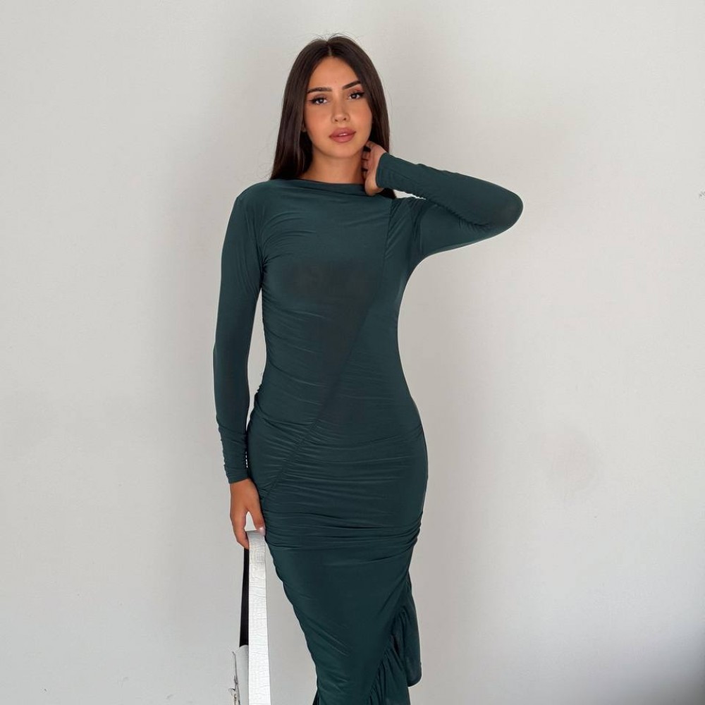 219957 TOPTAN ZÜMRÜT YEŞİL ELBİSE