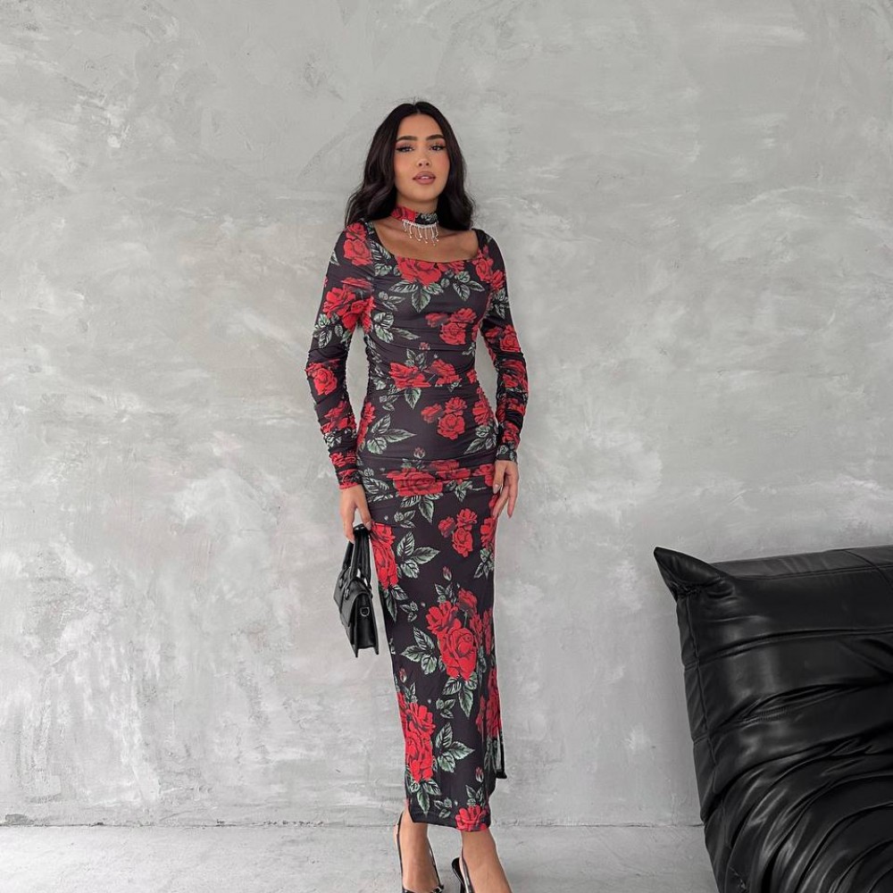 220018 TOPTAN DESENLİ ELBİSE