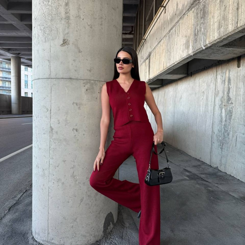 220458 TOPTAN BORDO PANTOLON TAKIM