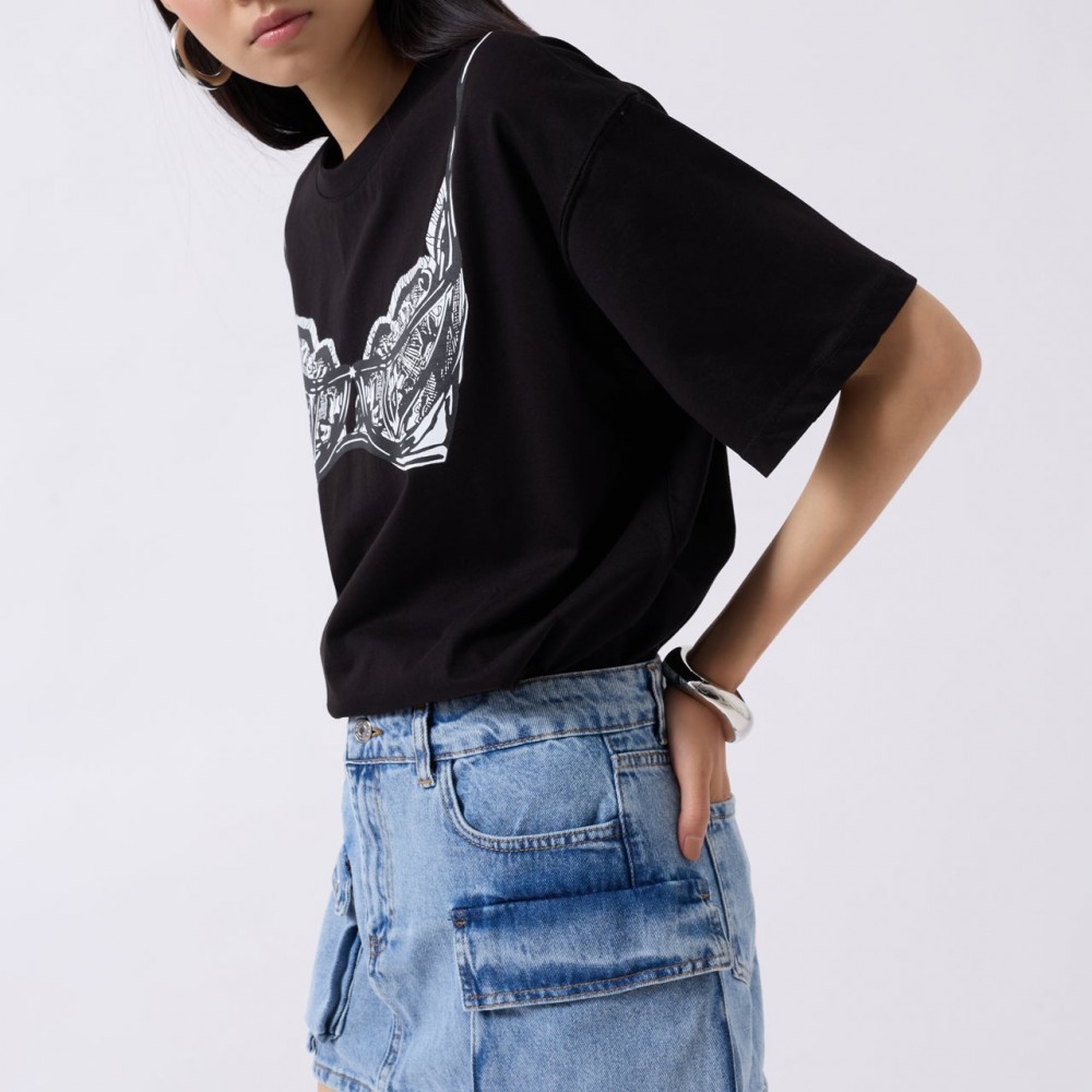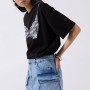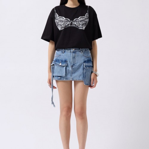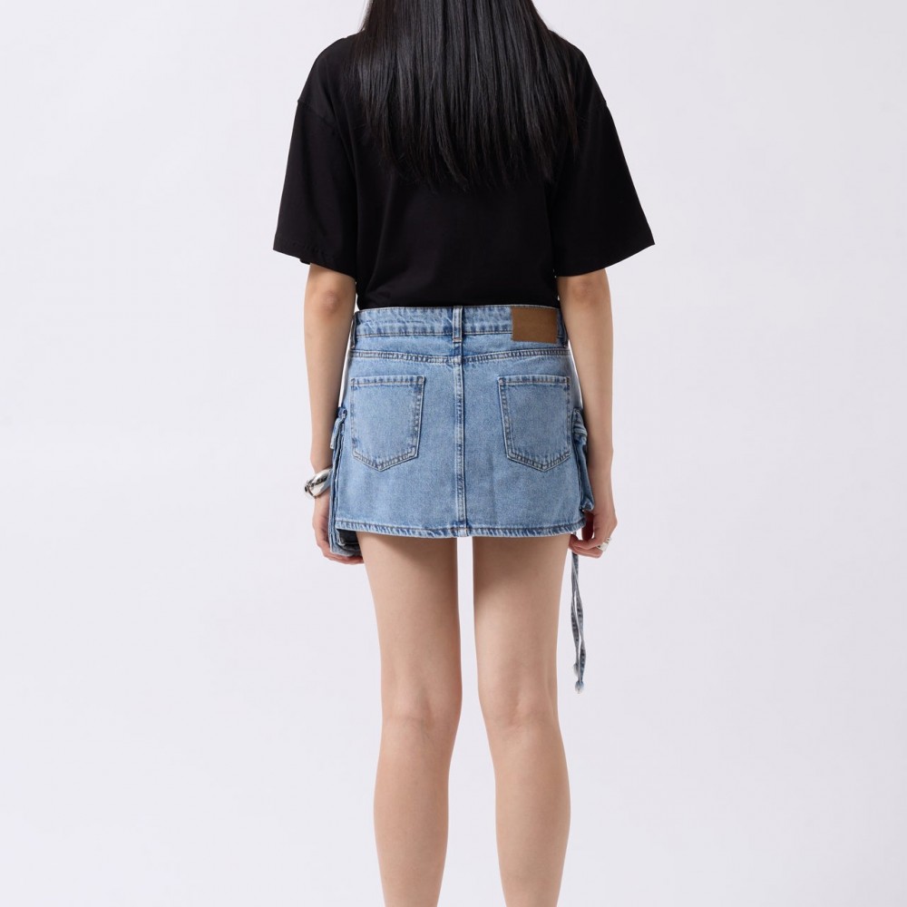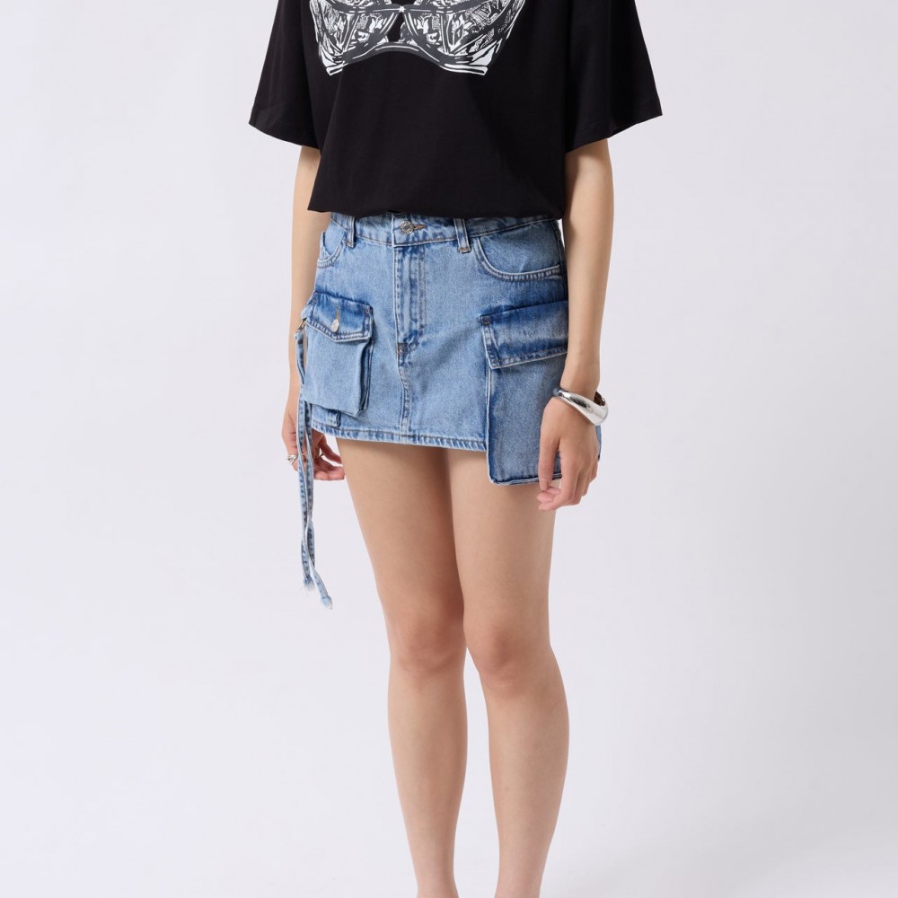 Kargo Cep Detaylı, Metal Düğmeli, Asimetrik Görünümlü, Mini, Denim Ete