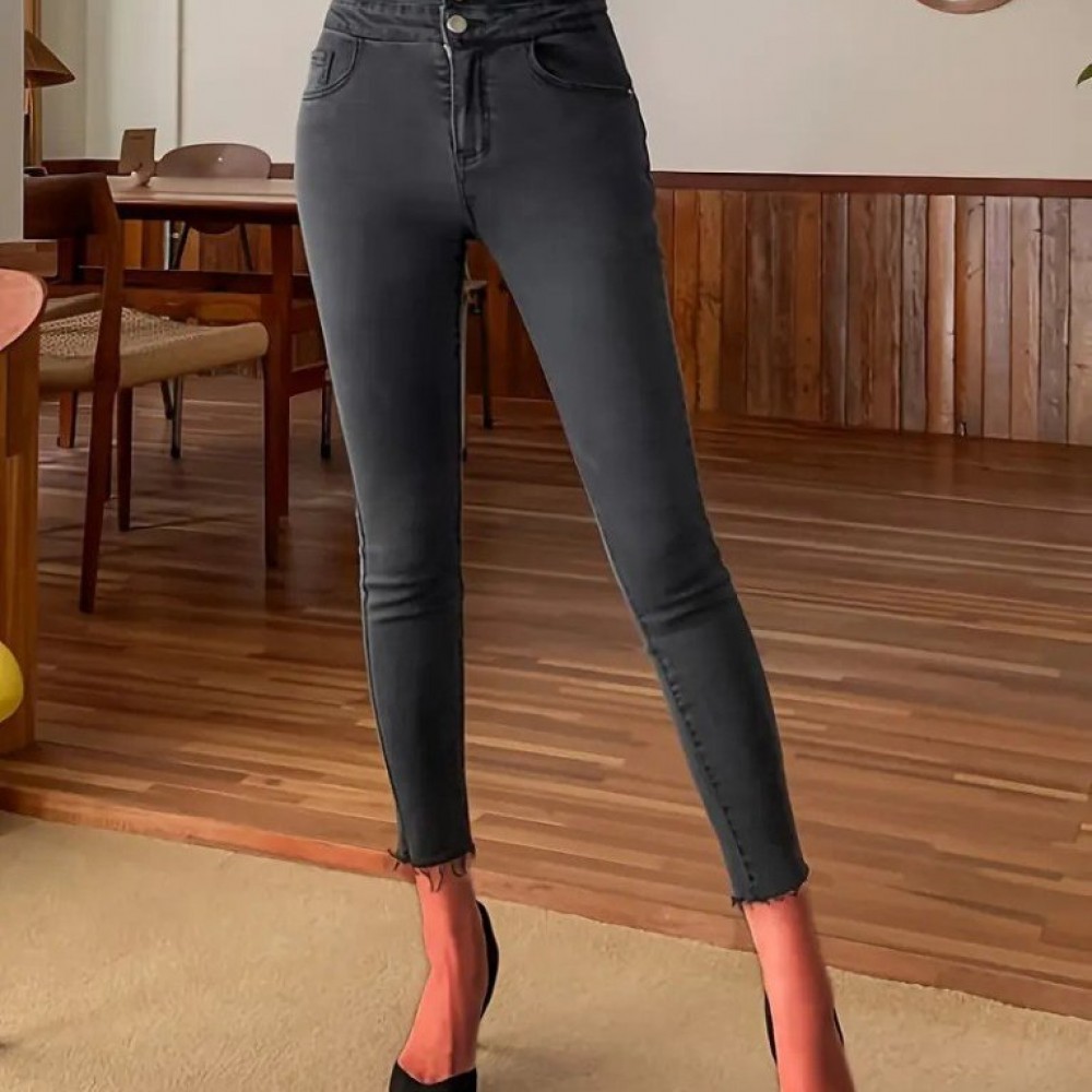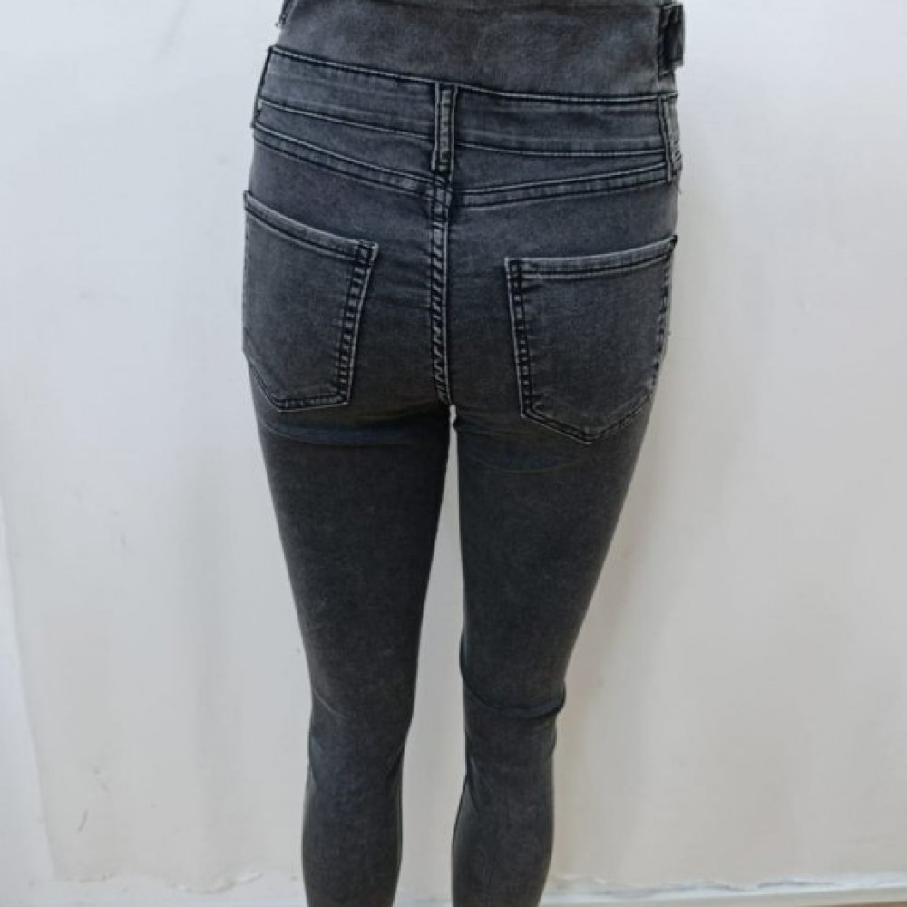 Kadın Yüksek Bel önden Düğmeli Cepli Dar Kesim Detaylı Kot Pantolon