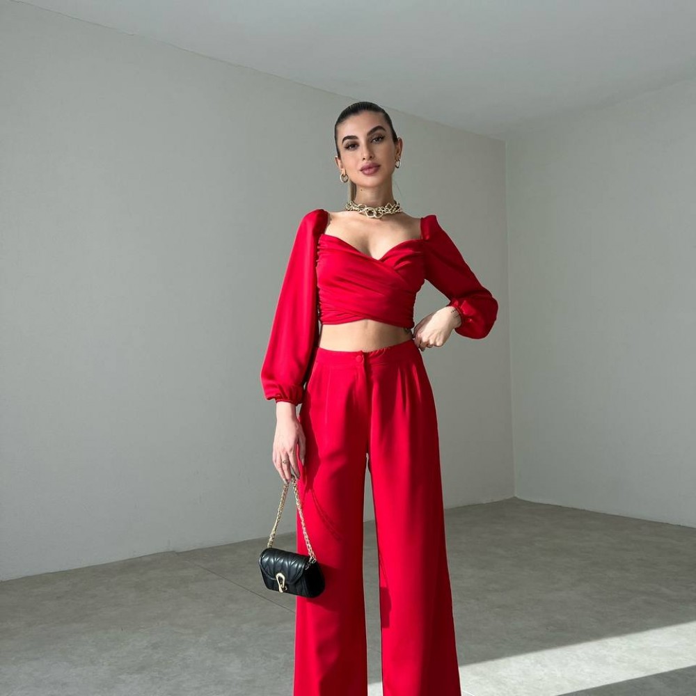 145144 TOPTAN KIRMIZI PANTOLON TAKIM