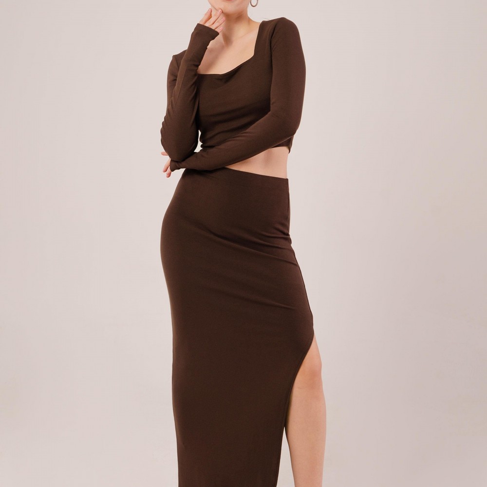 H4706-KAHVERENGİ-L KAHVERENGI ETEK
