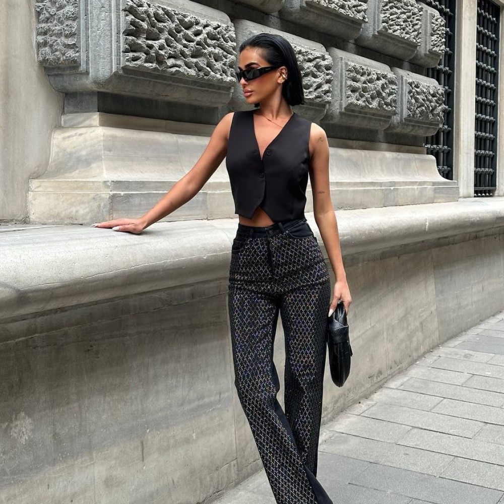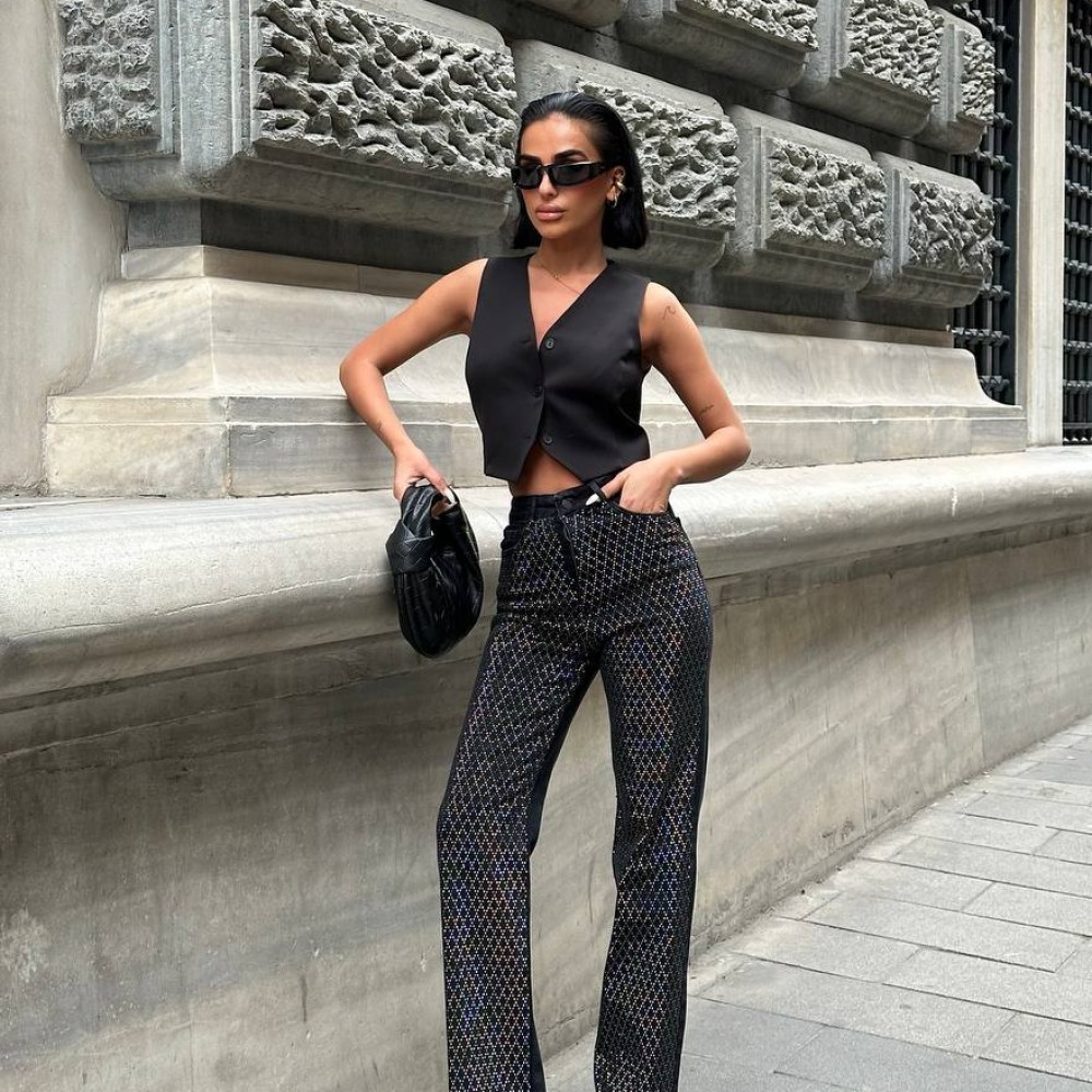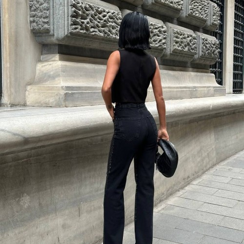 KÜÇÜK BAKLAVA TAŞLI SİYAH PALAZZO