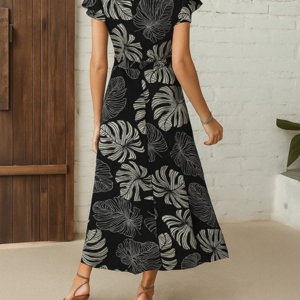 K55142-YAPRAK_DESEN DESENLİ ELBİSE