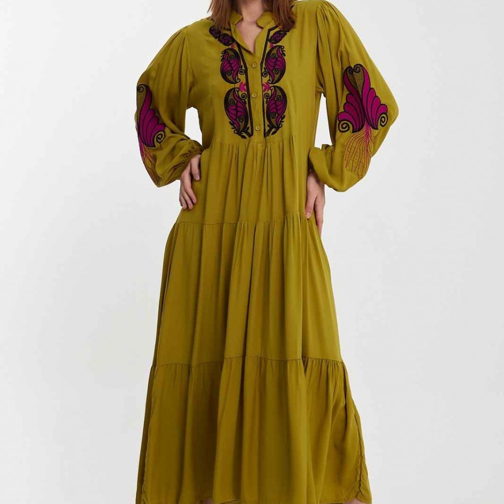 216349 TOPTAN YEŞİL ELBİSE
