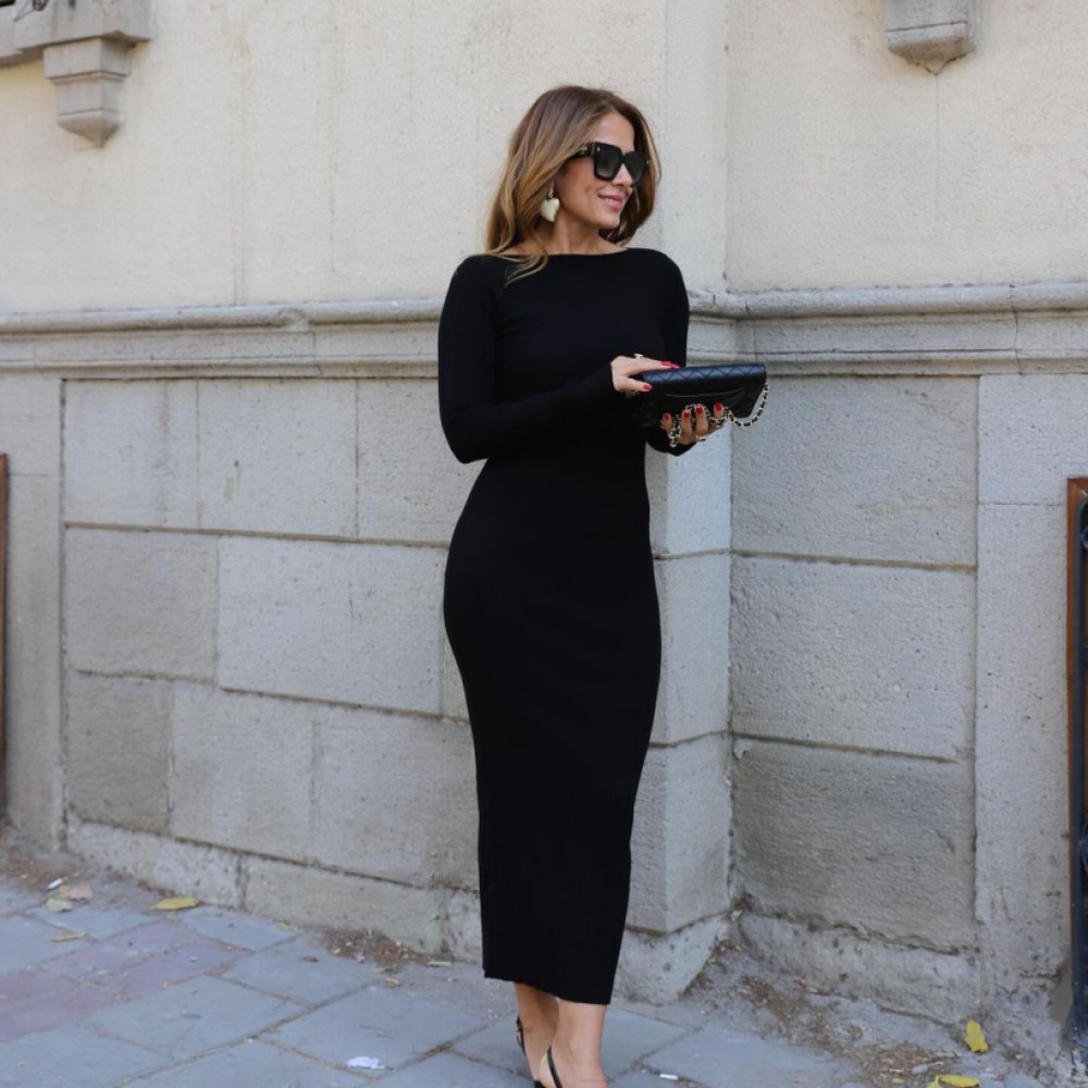 Kadın Uzun Kollu Yuvarlak Yaka Akrilik Elbise