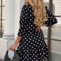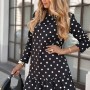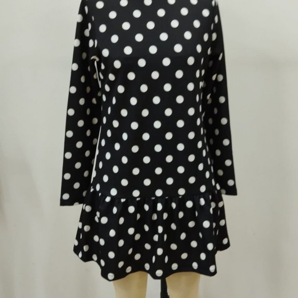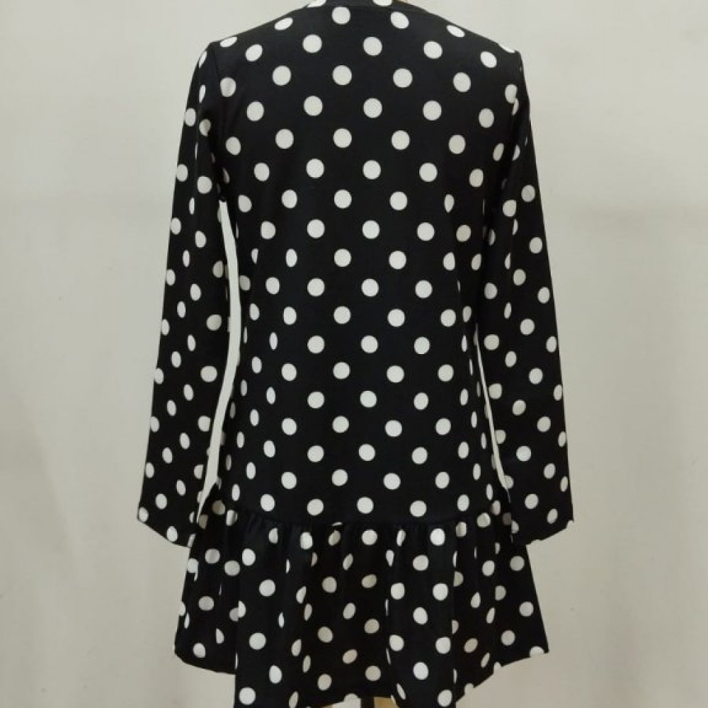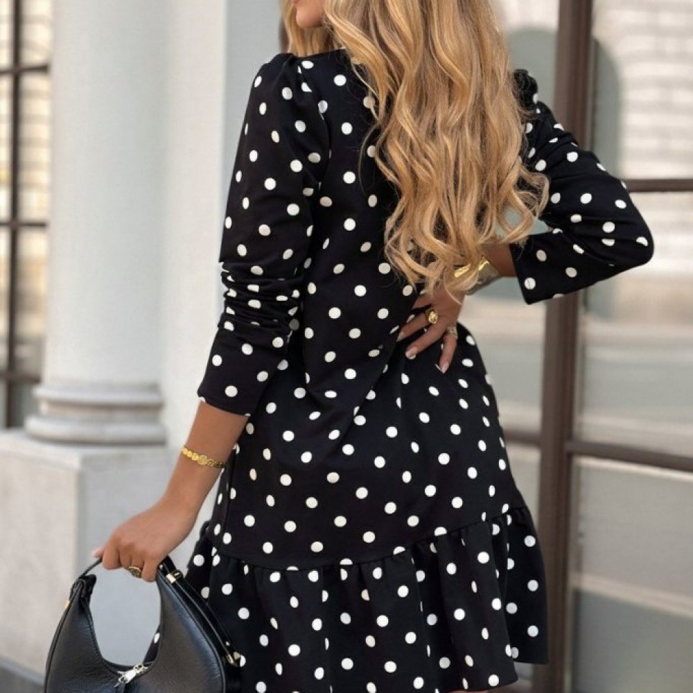 Kadın Uzun Kollu Bisiklet Yaka Fırfırlı Puantiyeli Kısa Modal Elbise