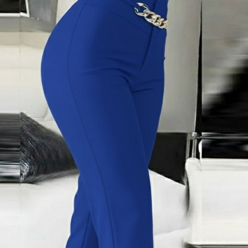 Kadın Yüksek Bel önden Zincir Detaylı Ithal Krep Pantolon