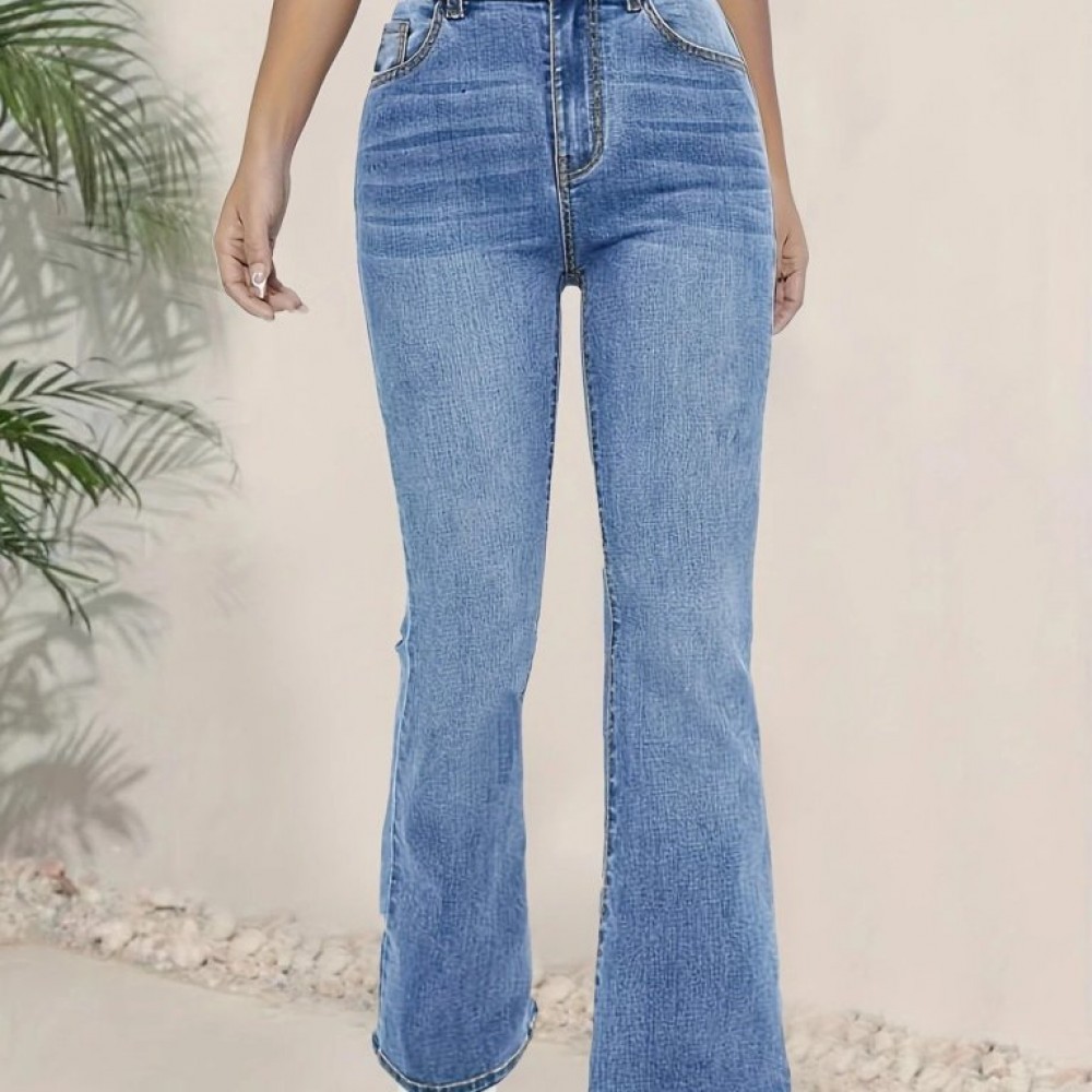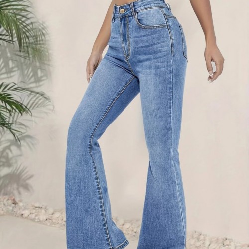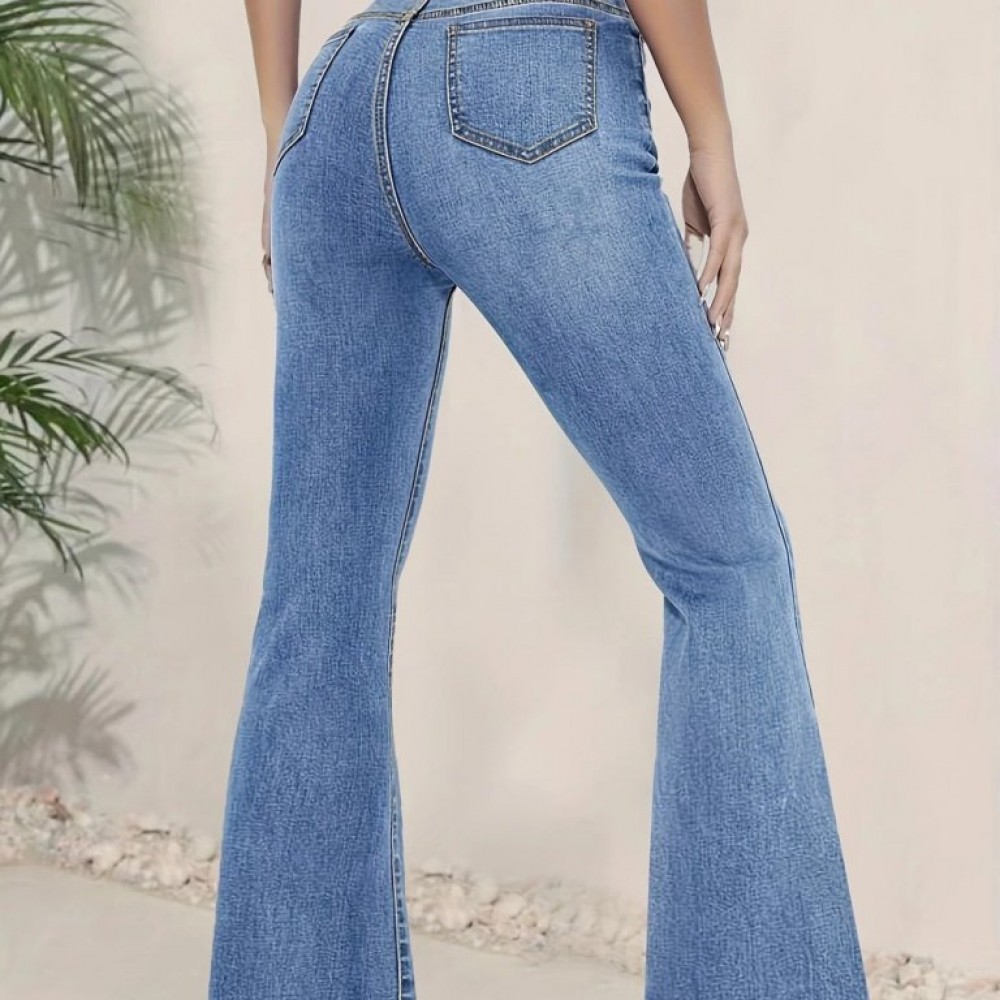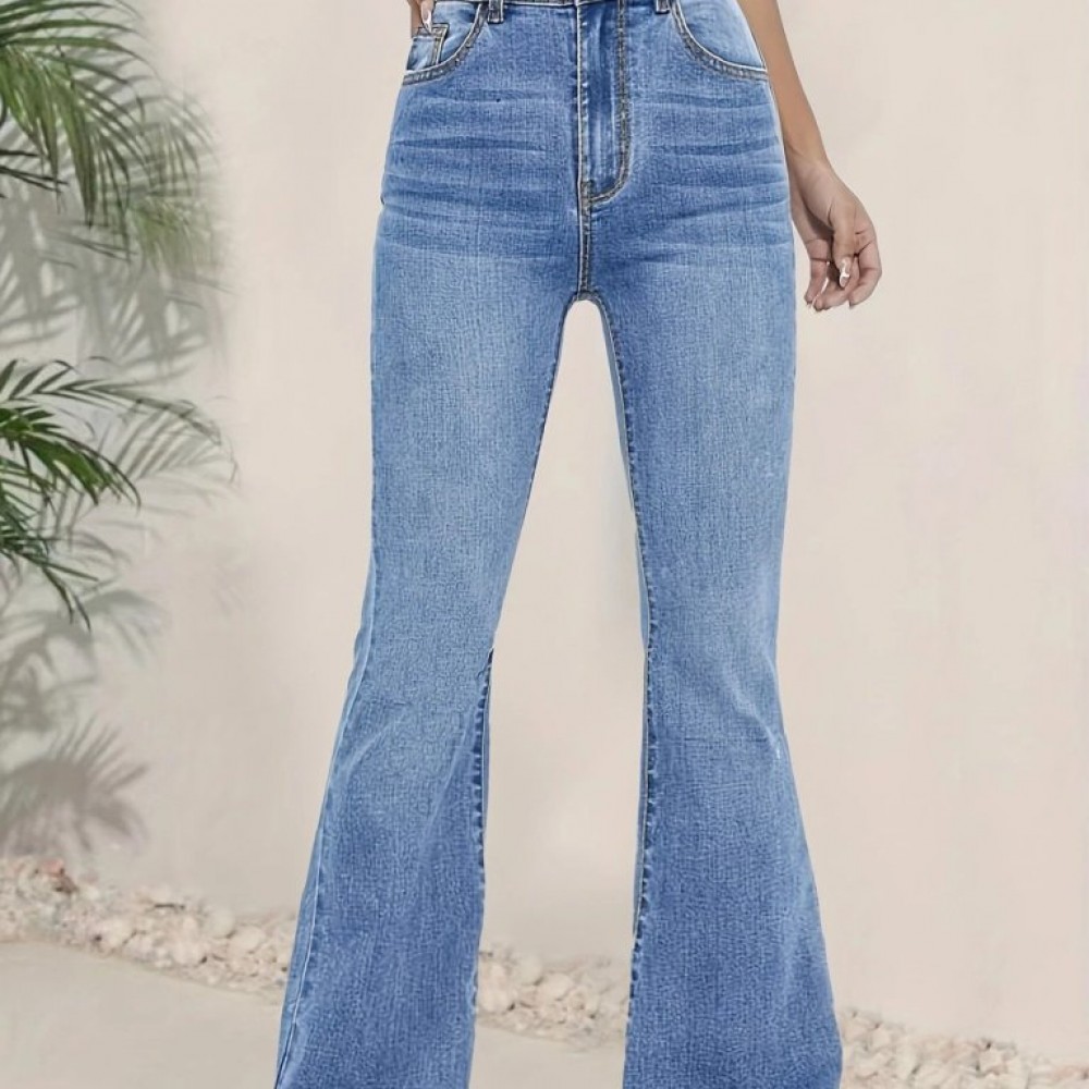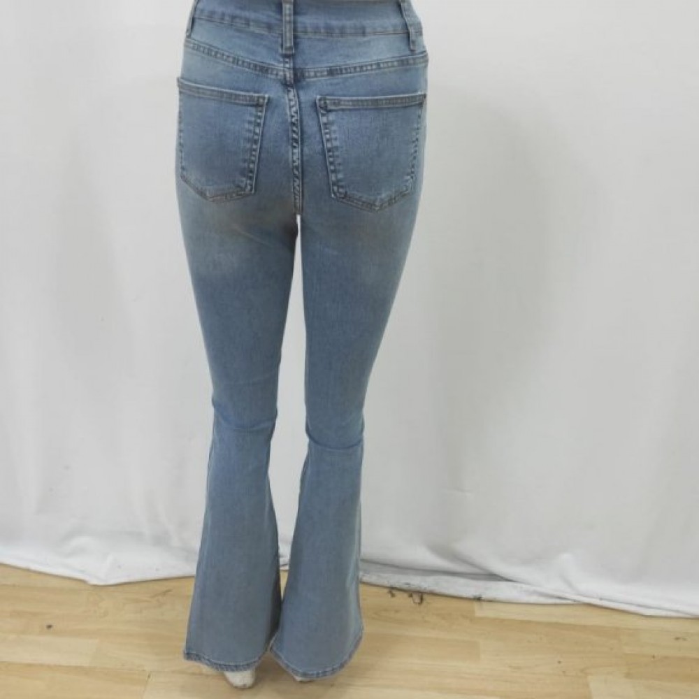 Kadın Yüksek Bel Paçaya Doğru Genişleyen Kot Pantolon