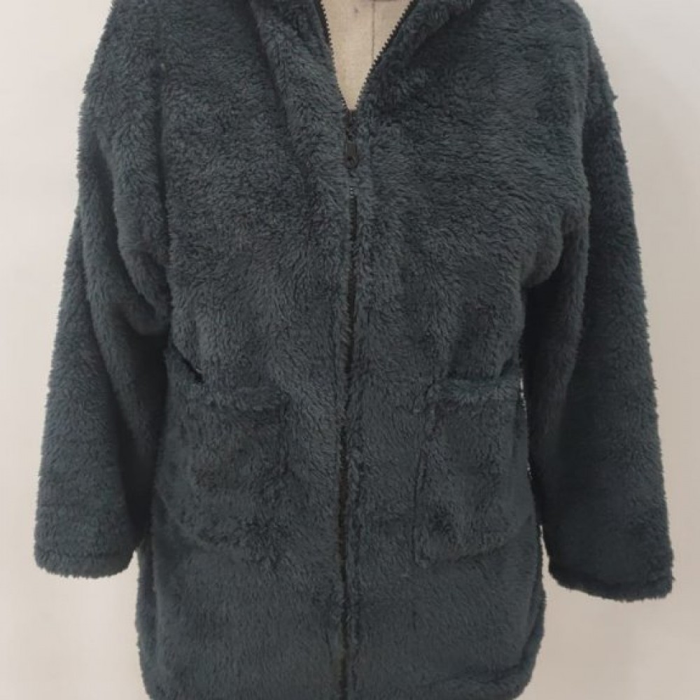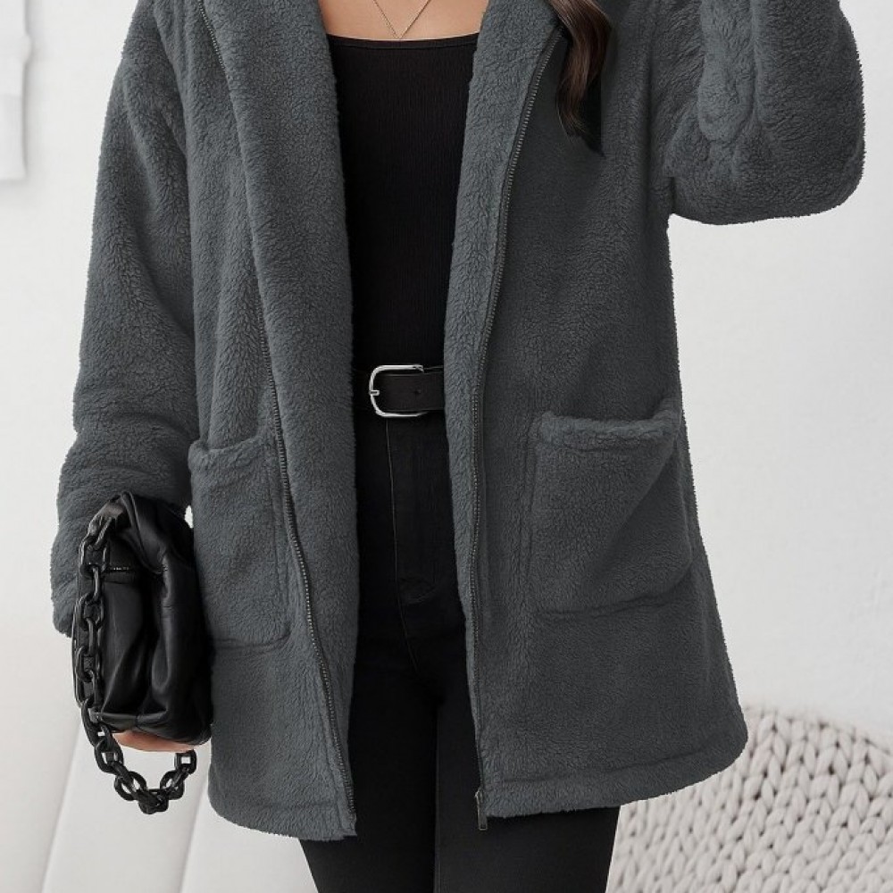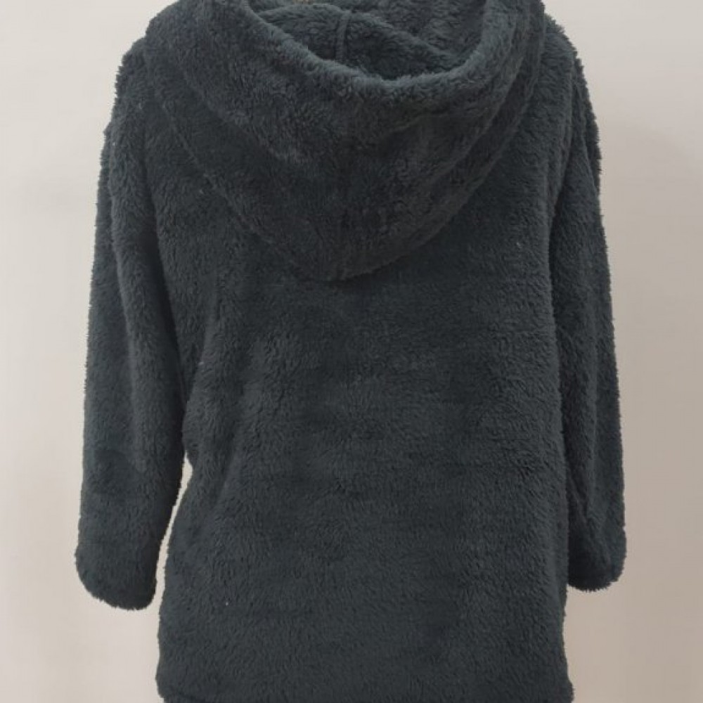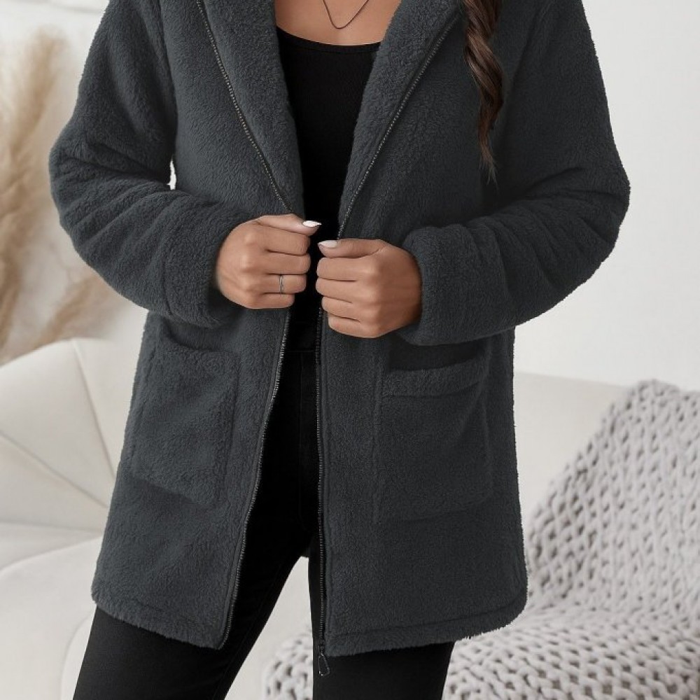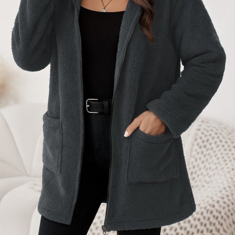 Kadın Uzun Kollu Kapşonlu önden Fermuarlı Cepli Welsoft Ceket