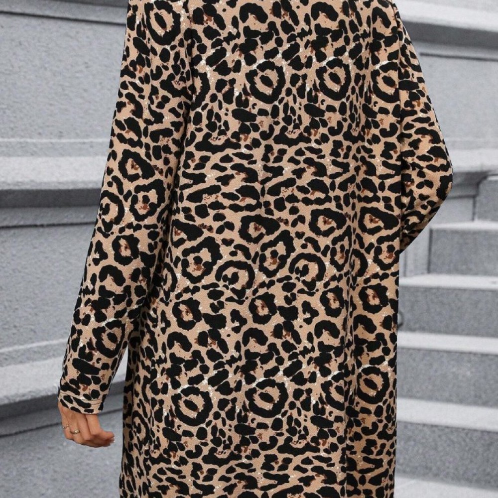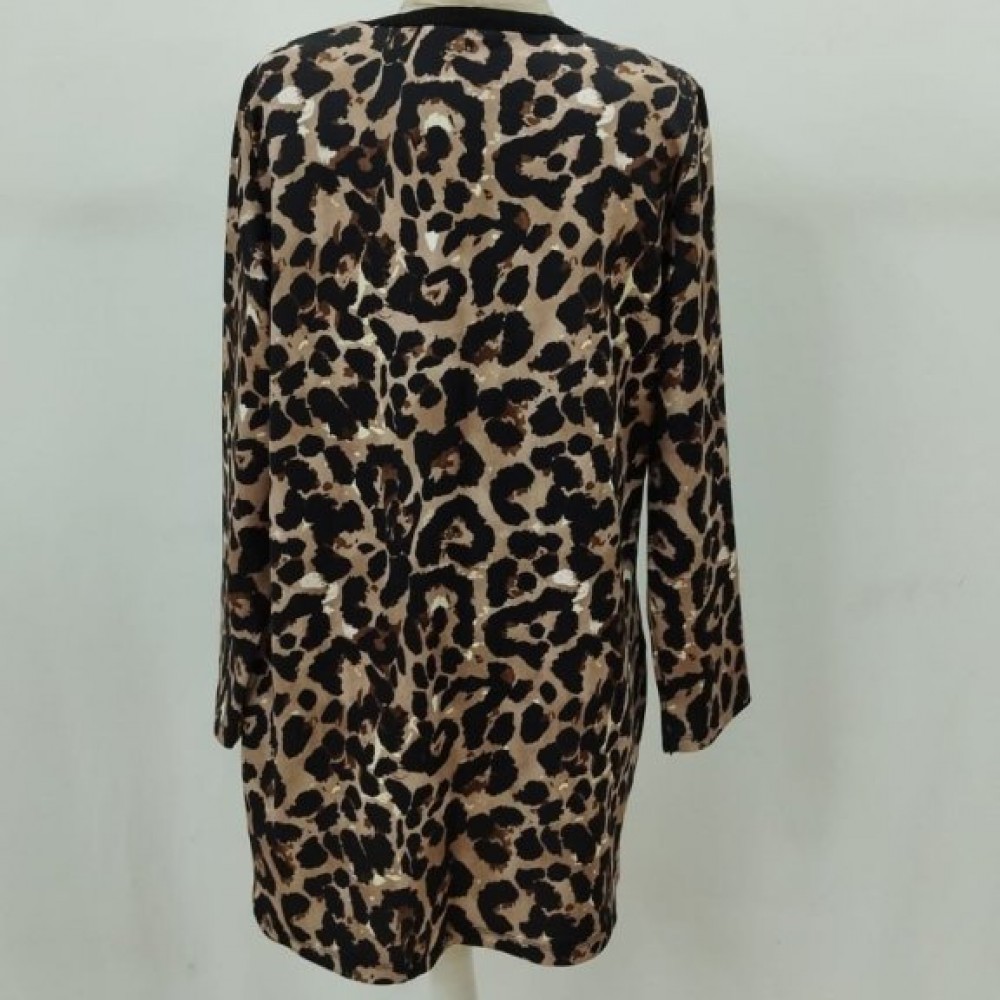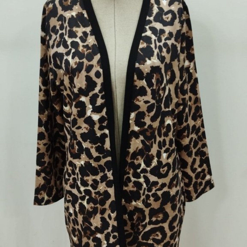Kadın Uzun Kollu önü Açık Leopar Desenli Modal Ceket