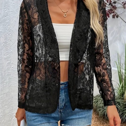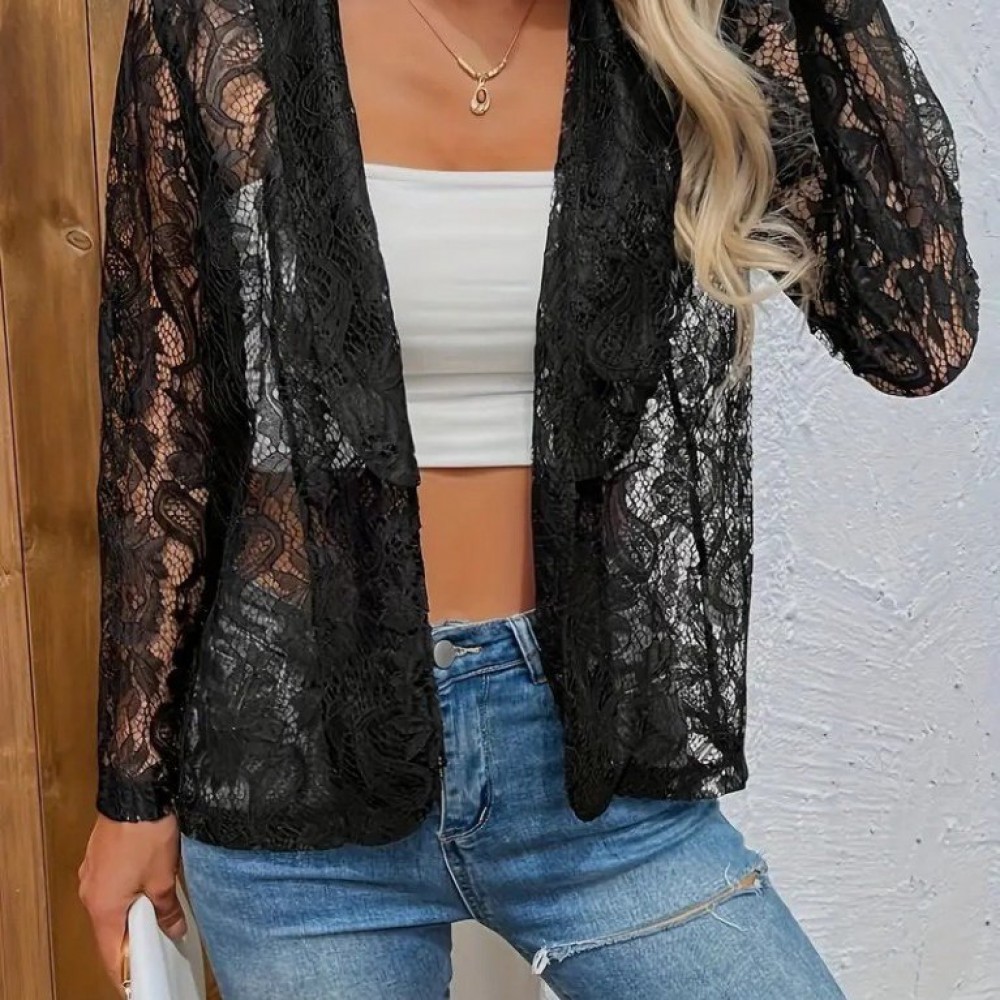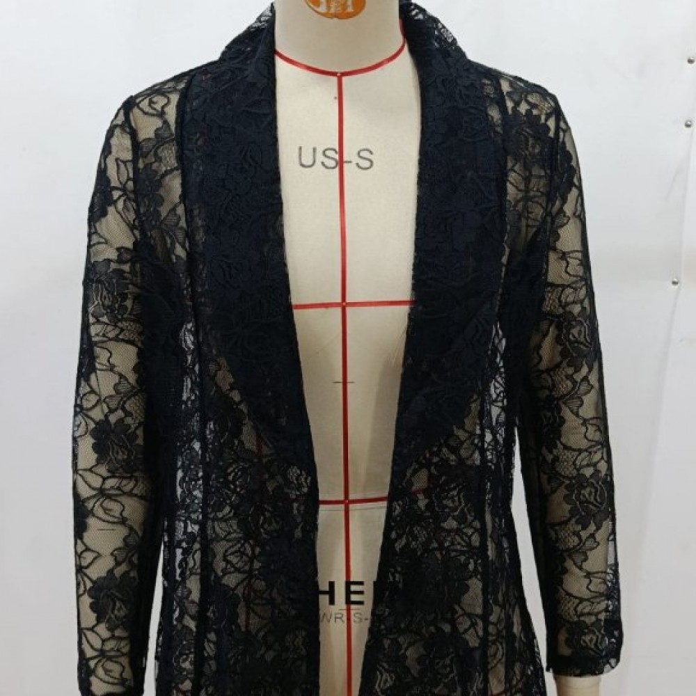 Kadın Uzun Kollu Yakalı önü Açık Dantelli Ceket