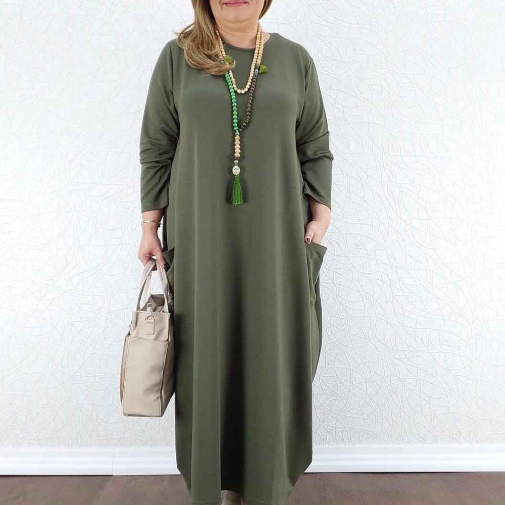 214416 TOPTAN HAKİ ELBİSE