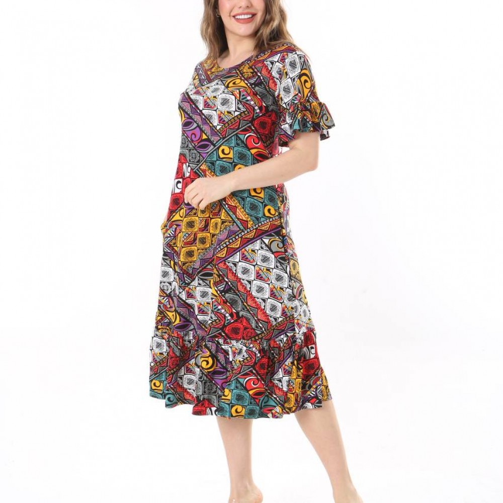VİSKON ÖRME KUMAŞ LIKRALI CEPLİ FIRFIRLI ELBİSE