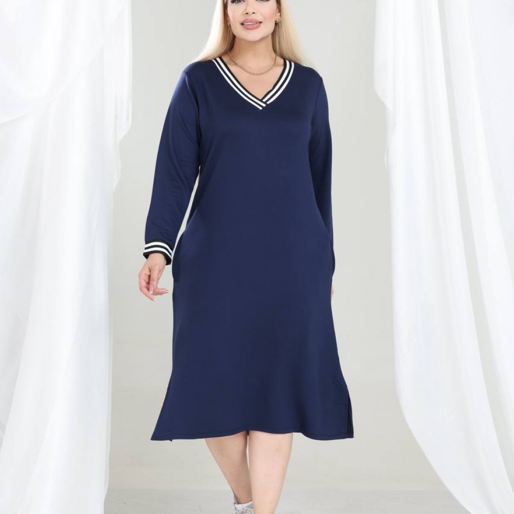 İKİ İPLİK V YAKA ŞERİTLİ ELBISE