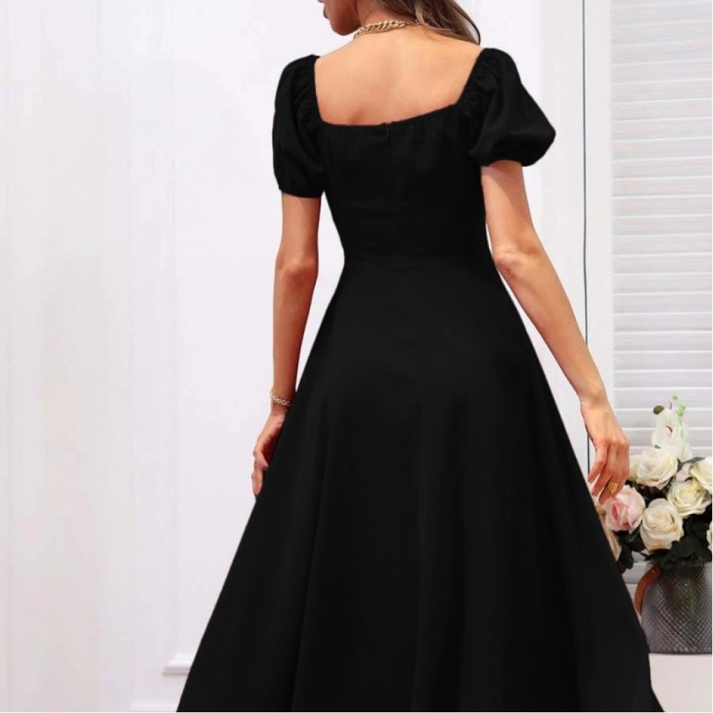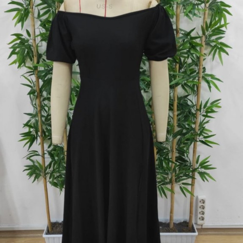 K1460-SIYAH SİYAH ELBİSE