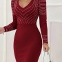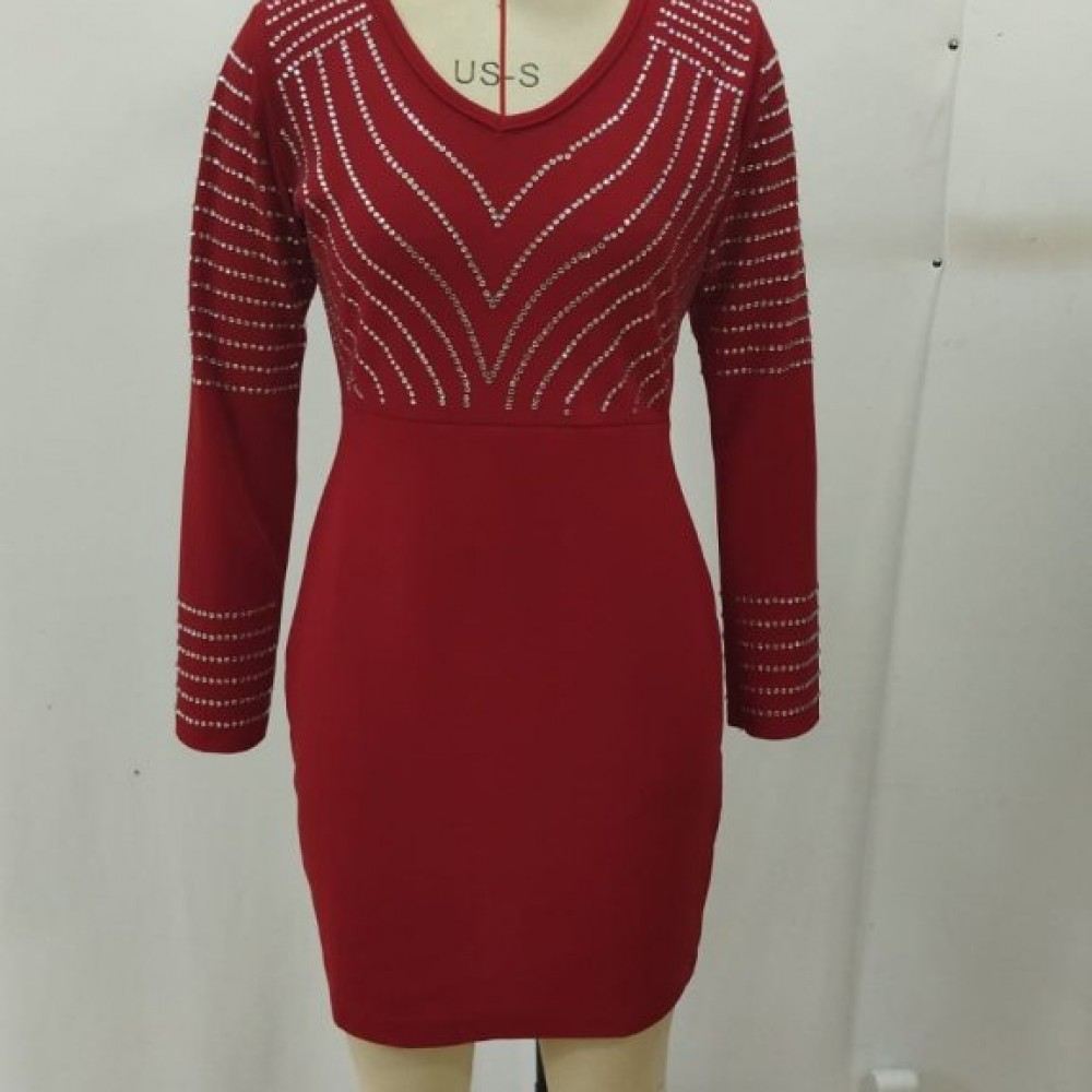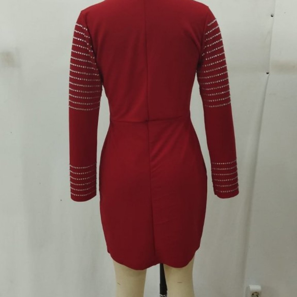 Kadın Uzun Kollu V Yakalı Taşlı Mini Ithal Krep Elbise