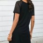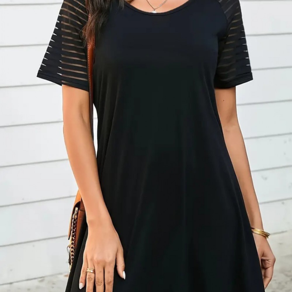 Kadın Kısa Kollu Yuvarlak Yaka şerit Kol Detaylı Viskon Elbise