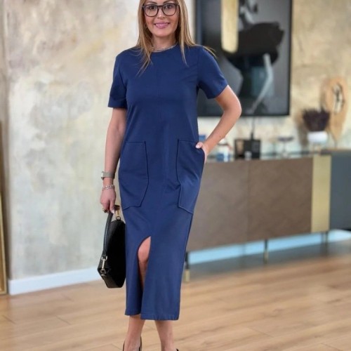 K61447-LACIVERT LACİVERT ELBİSE