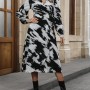 Kadın Uzun Kollu Kruvaze Yakalı Yandan Bağlamalı Desenli Mini Modal El