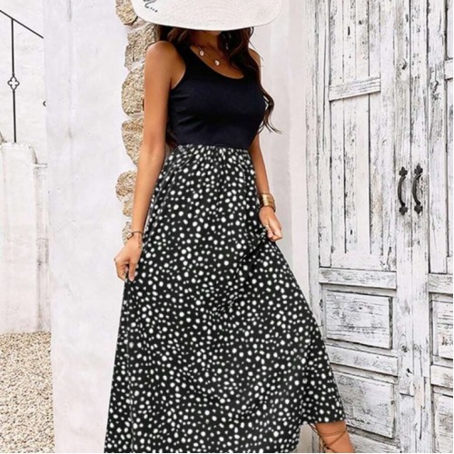 Kadın Askılı Yuvarlak Yaka üst Viskon Alt Desenli Bürümcük Elbise
