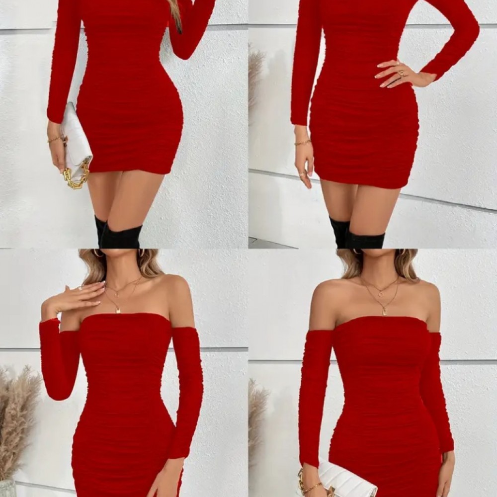 K86015-KIRMIZI KIRMIZI ELBİSE
