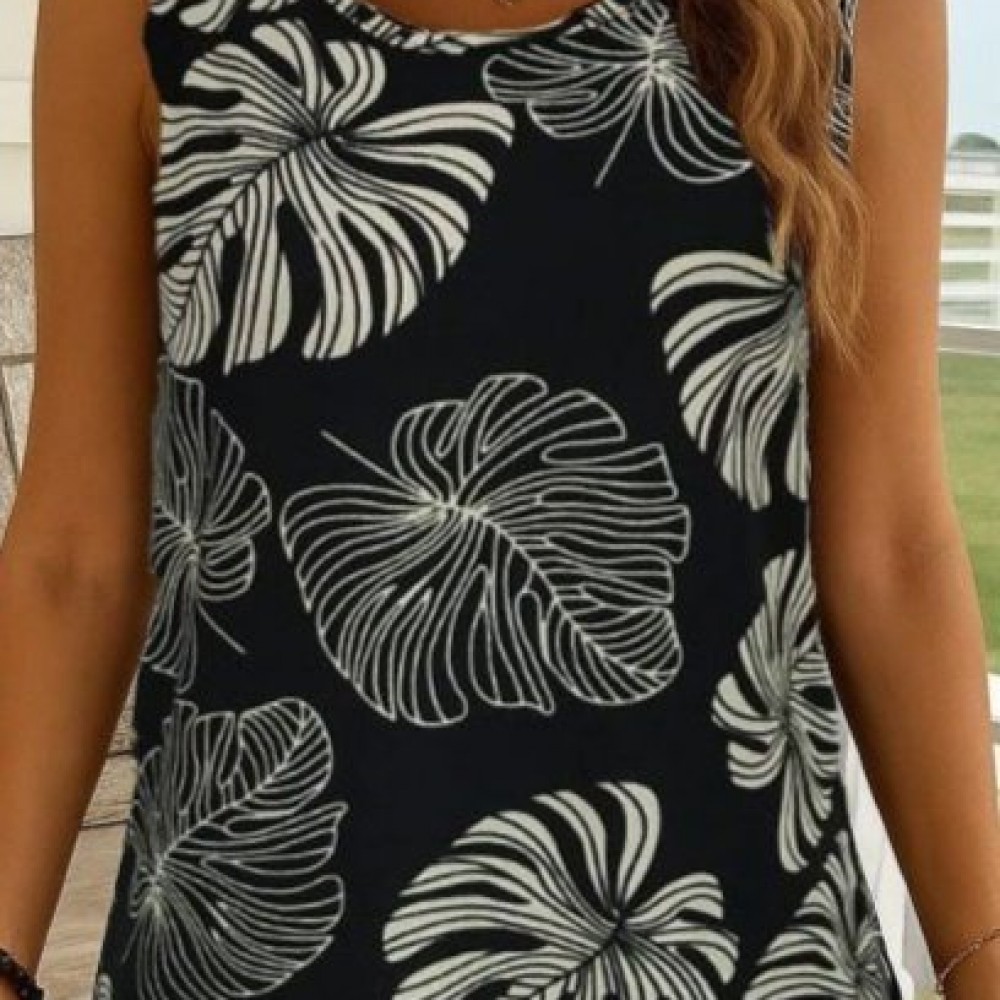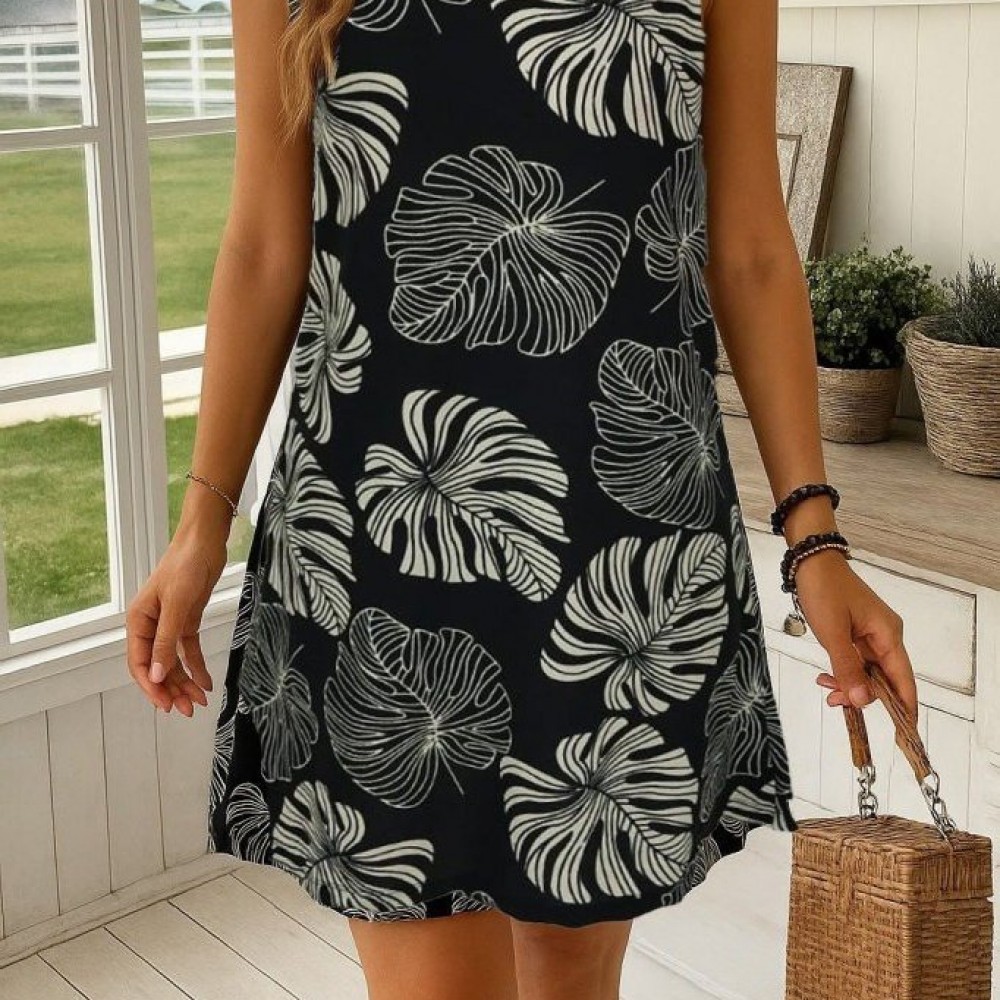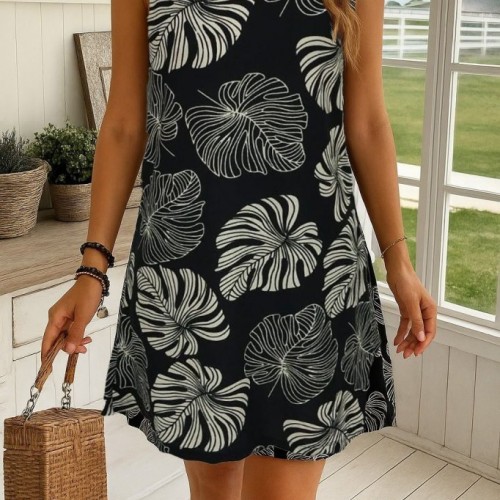 K87156-YAPRAK_DESEN YEŞİL ELBİSE