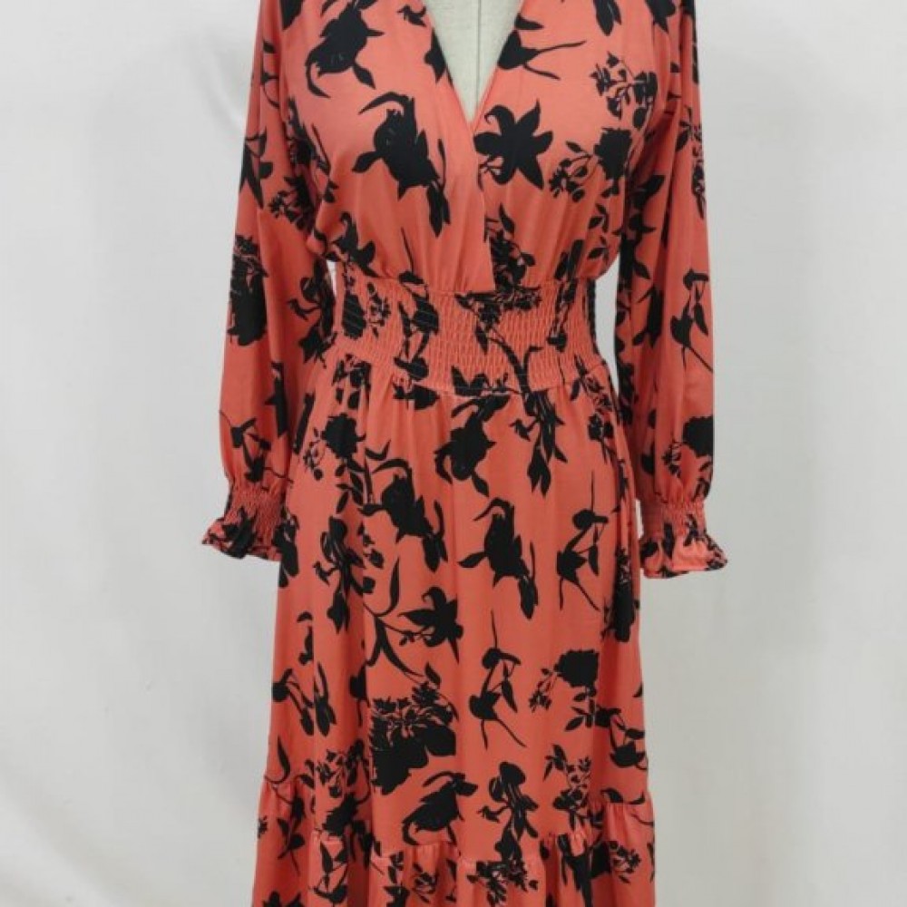 K97107-TURUNCU TURUNCU ELBİSE