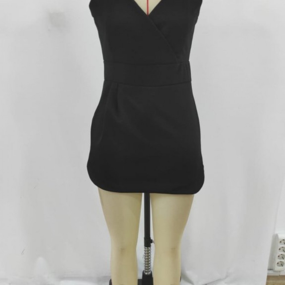 Kadın Ip Askılı Kruvaze Yakalı Cep Detaylı Ithal Krep Short Etek