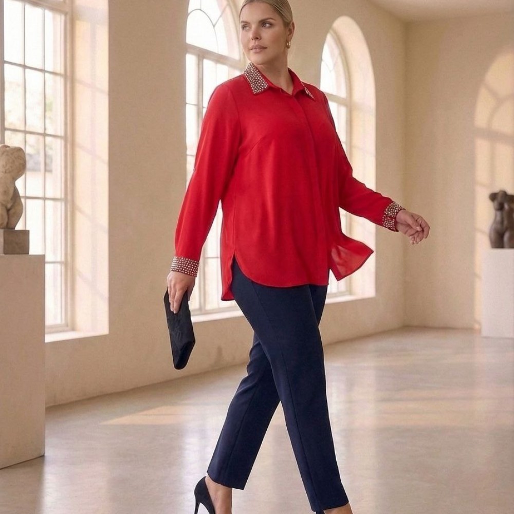 JESICA KREP BONCUK İŞLEME DETAYLI GÖMLEK 54-56-58 BEDENLI