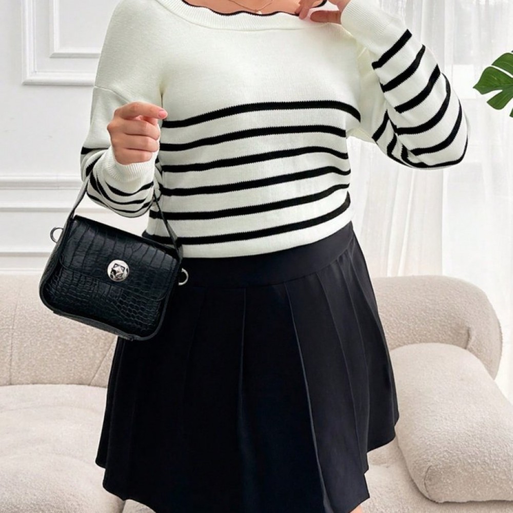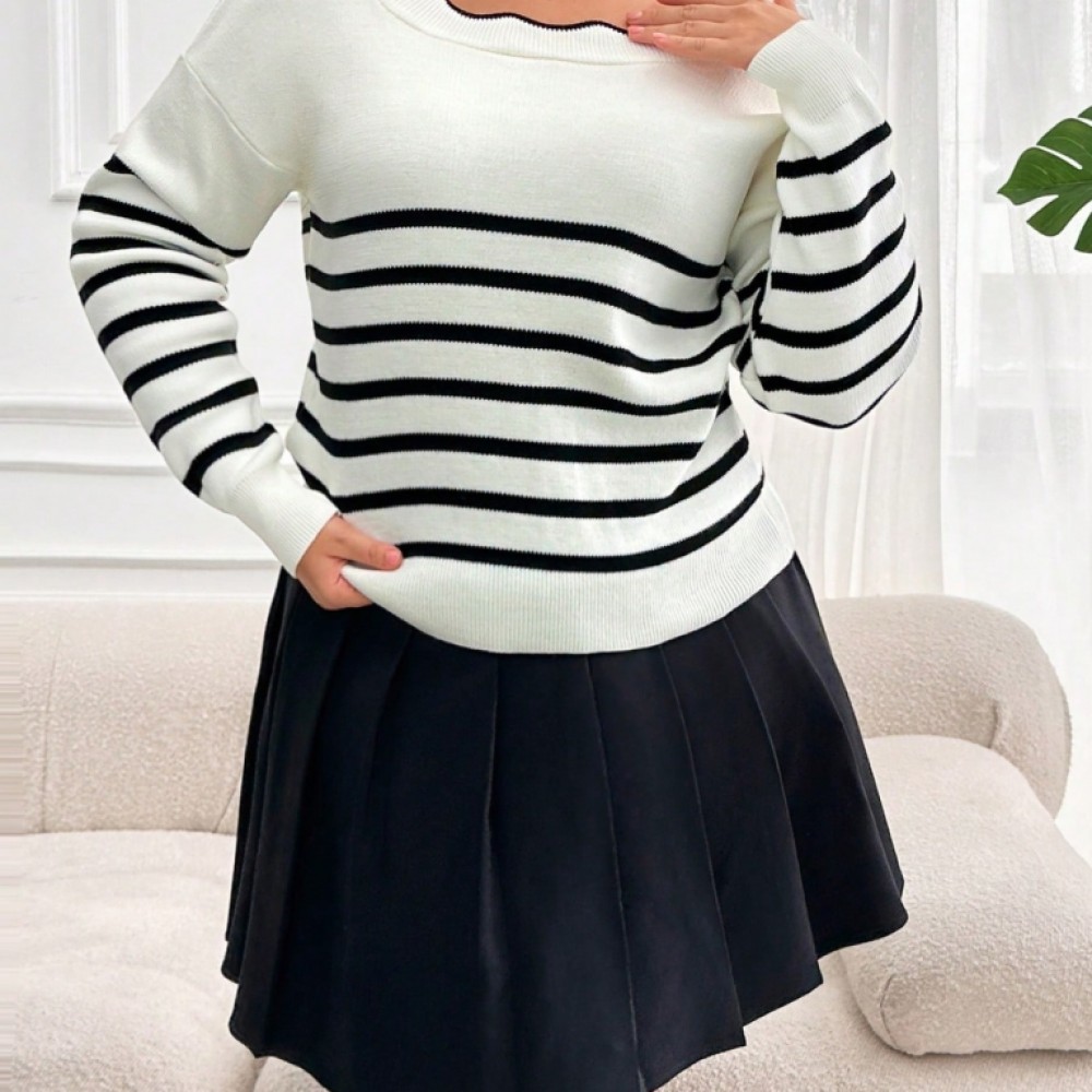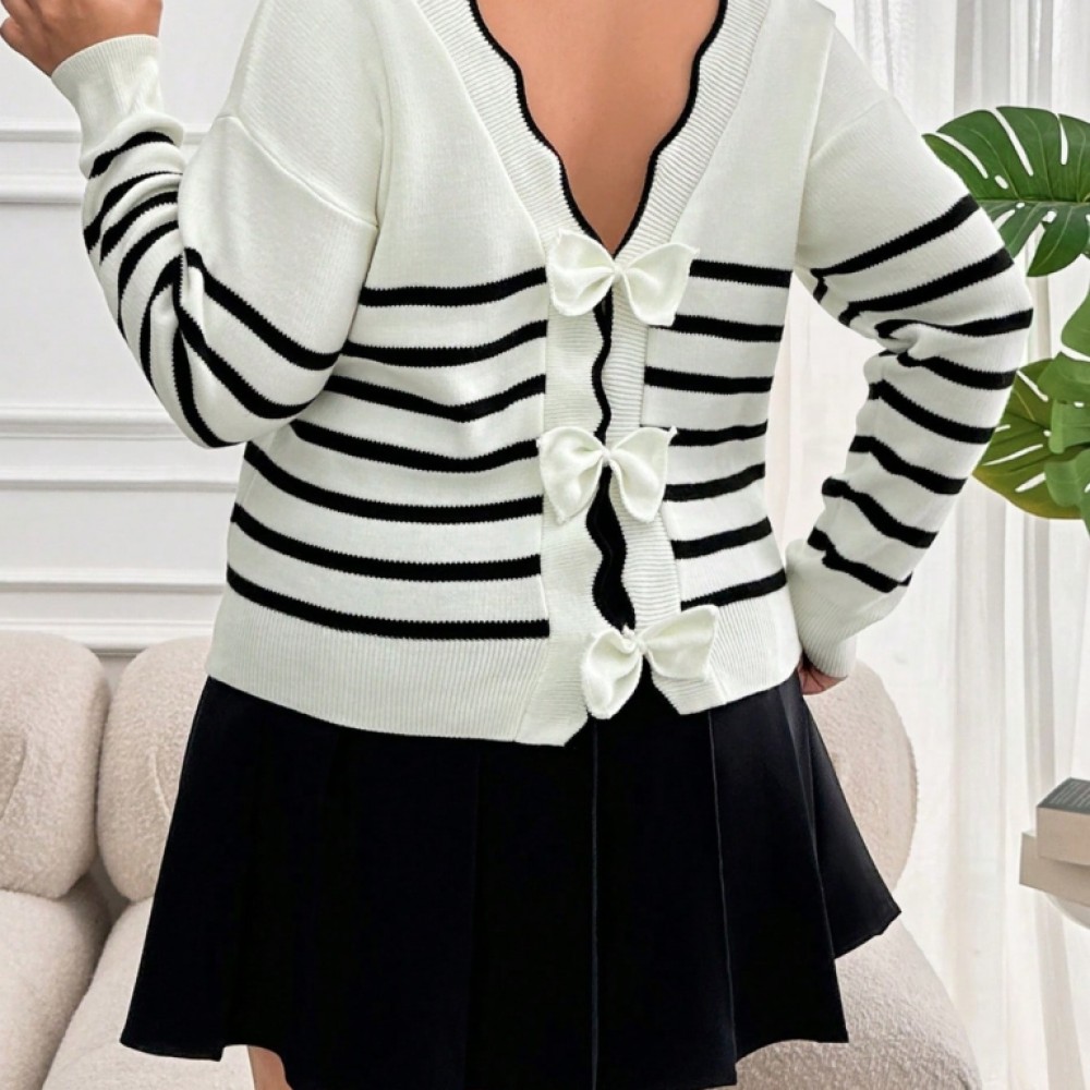 Kadın Beyaz Sırt Bağlama Detaylı çizgi Desen Triko Bluz