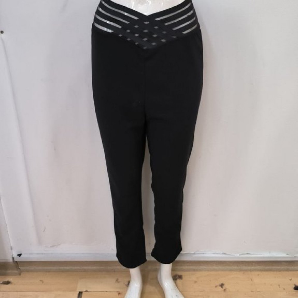 Kadın Yüksek Bel çapraz şerit Detaylı Ithal Krep Pantolon