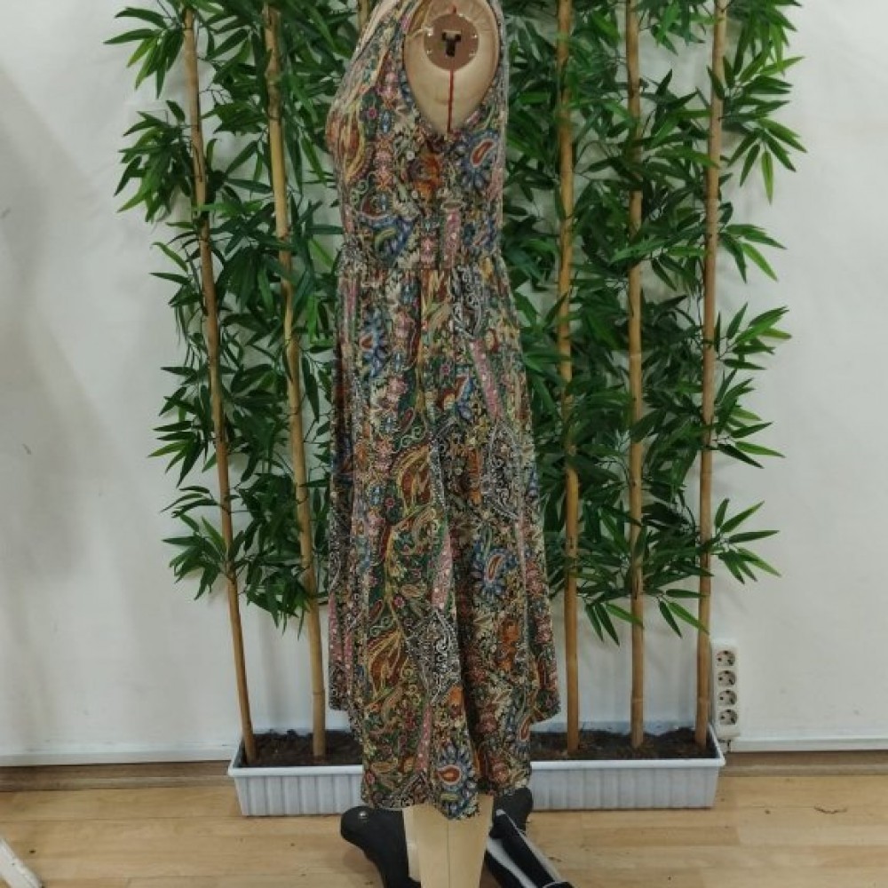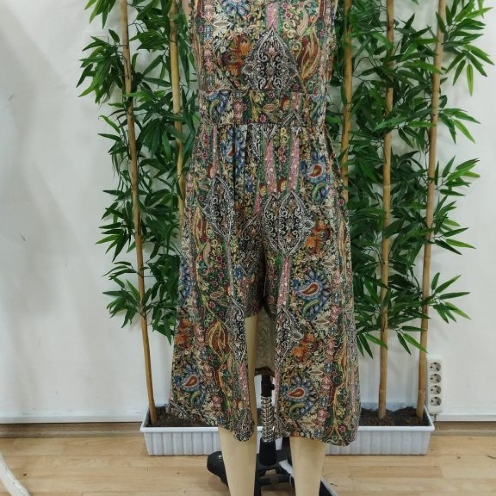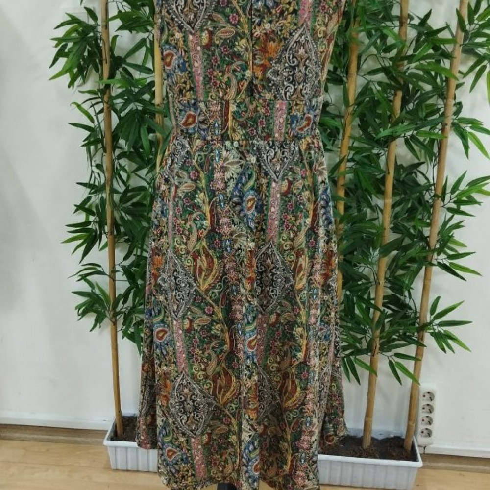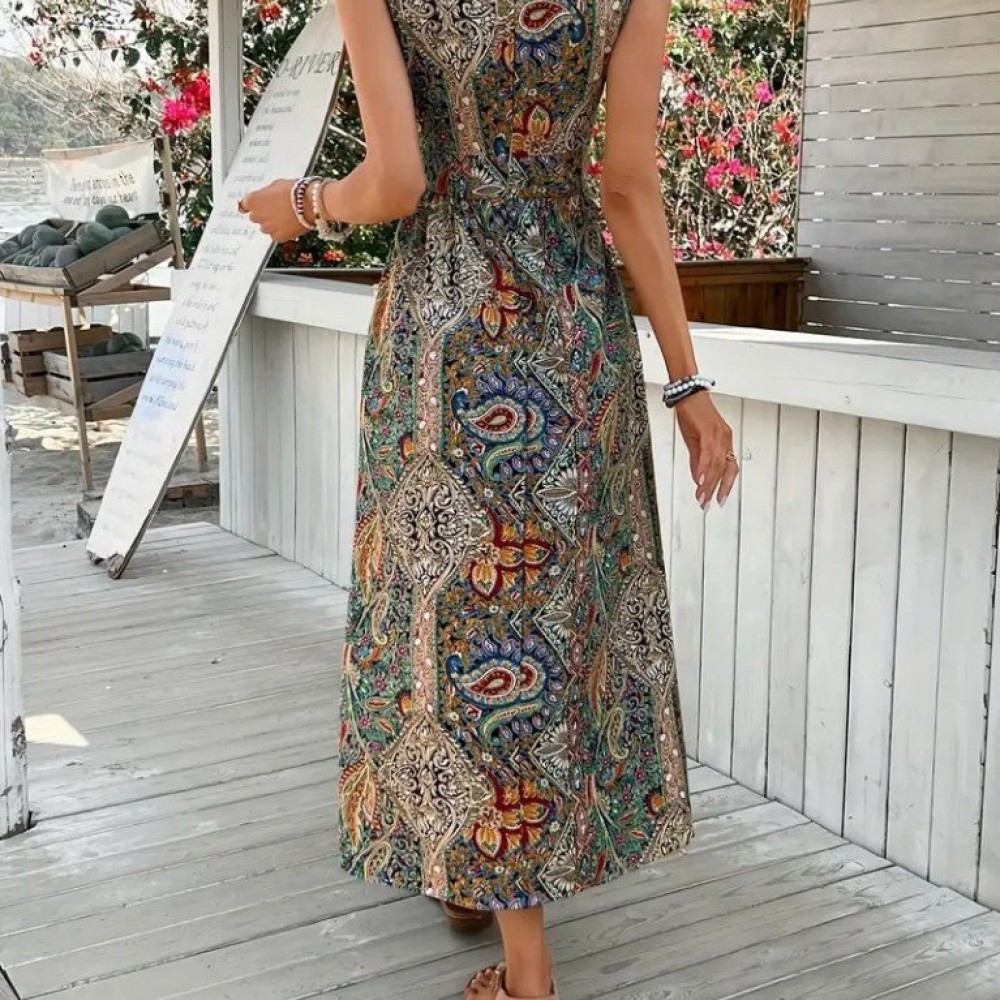 Kadın Kolsuz V Yakalı Desenli Süprem Tulum Elbise