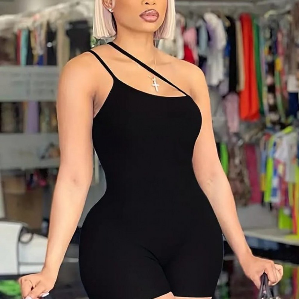 Kadın Asimetrik Askılı Mini Kaşkorse Bodycon Tulum