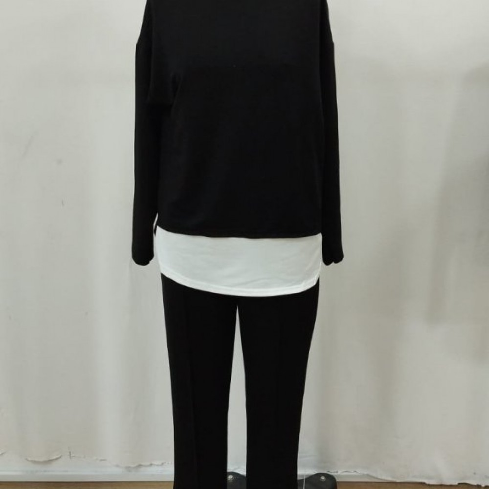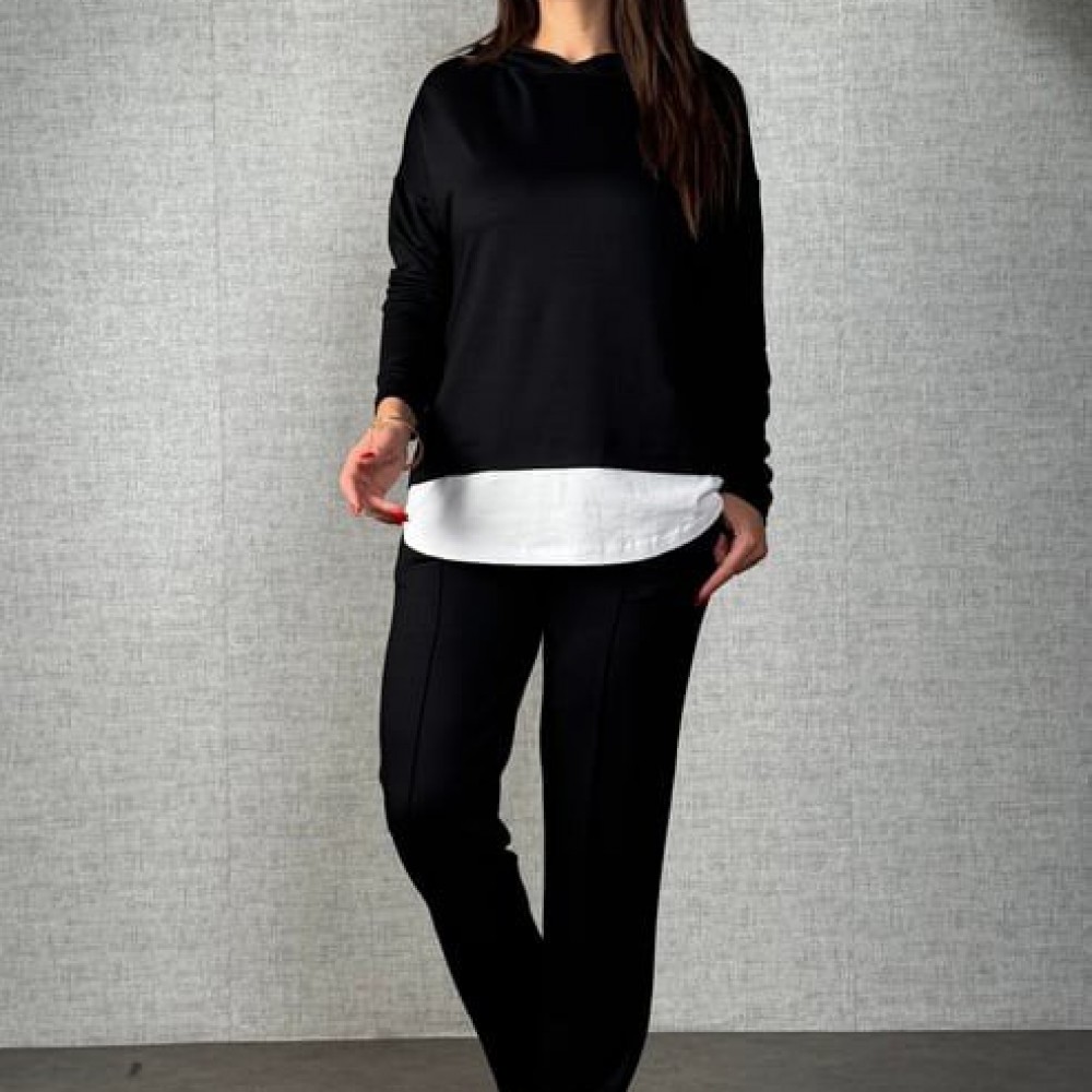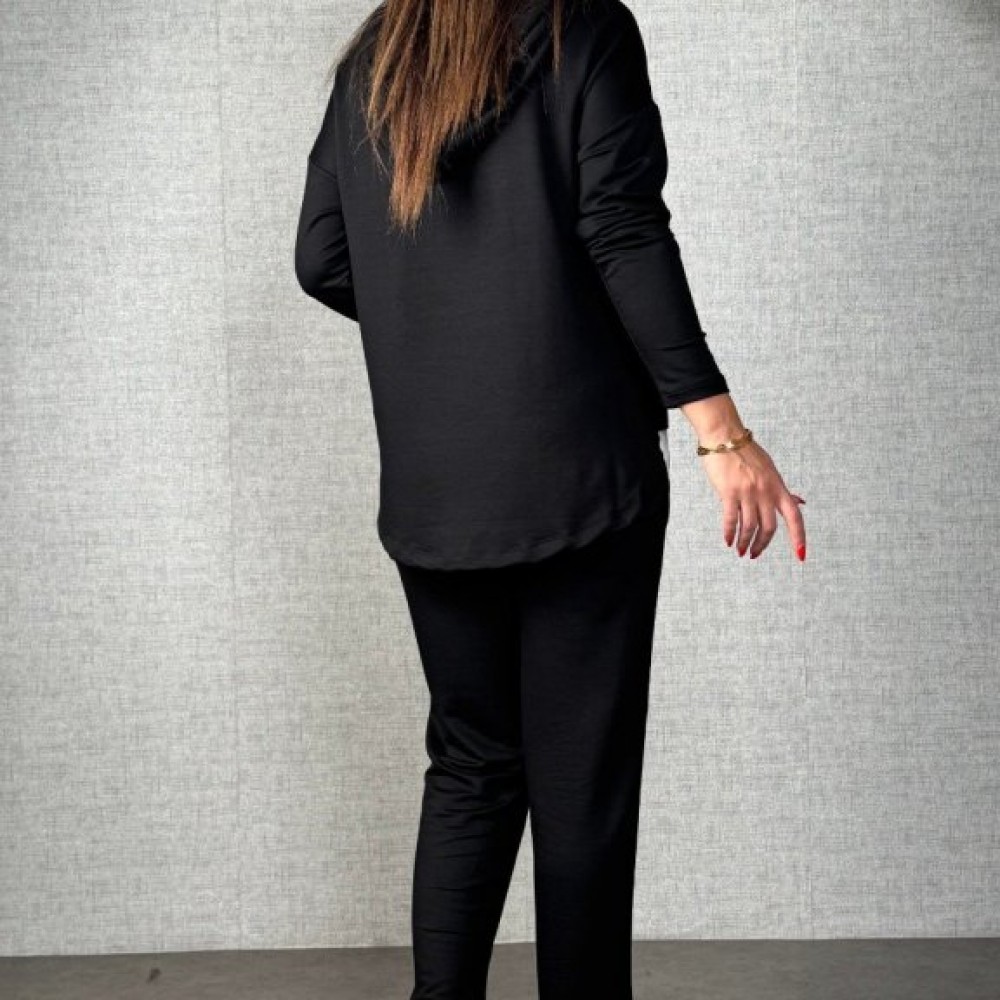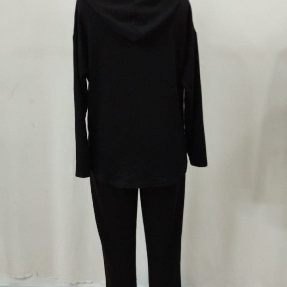 Kadın Uzun Kollu Kapşonlu Bağcıklı Viskon Iki Iplik Bluz Ve Pantolon I