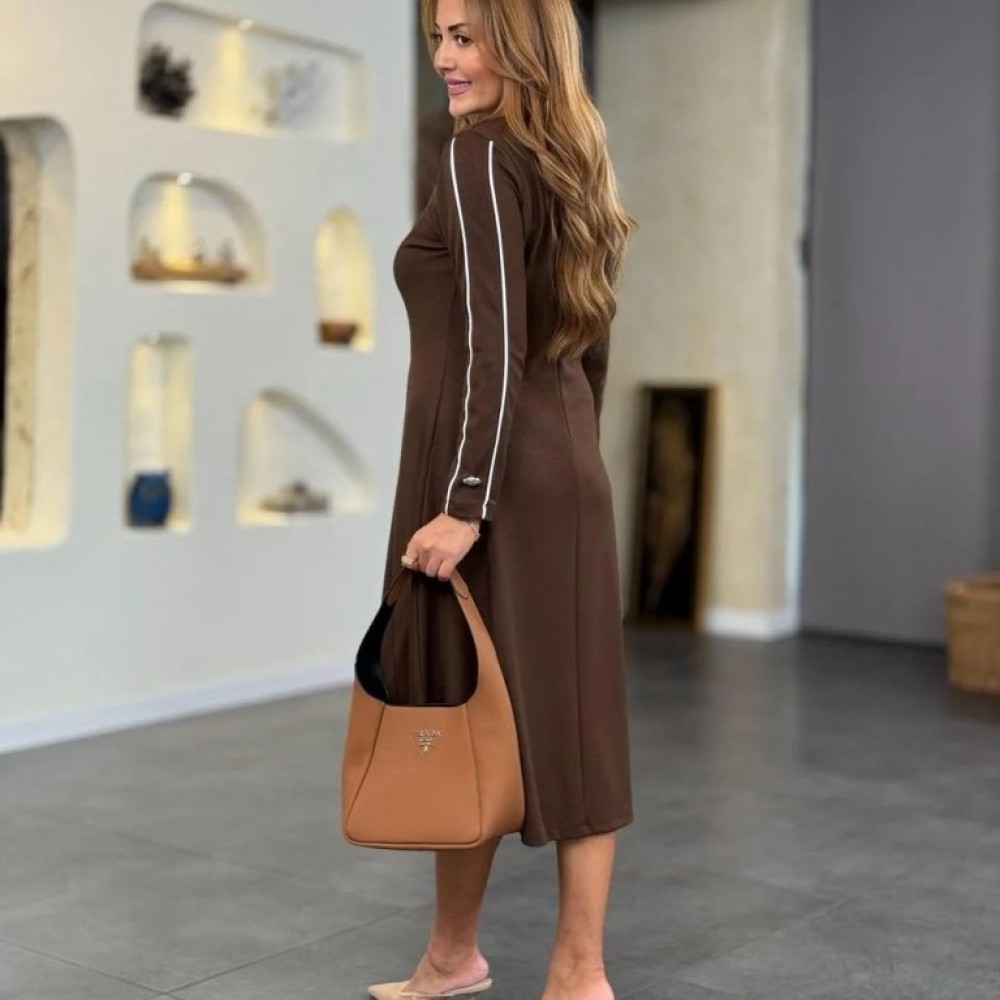 K61895-KAHVE KAHVE ELBİSE