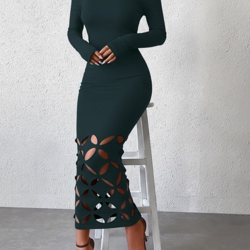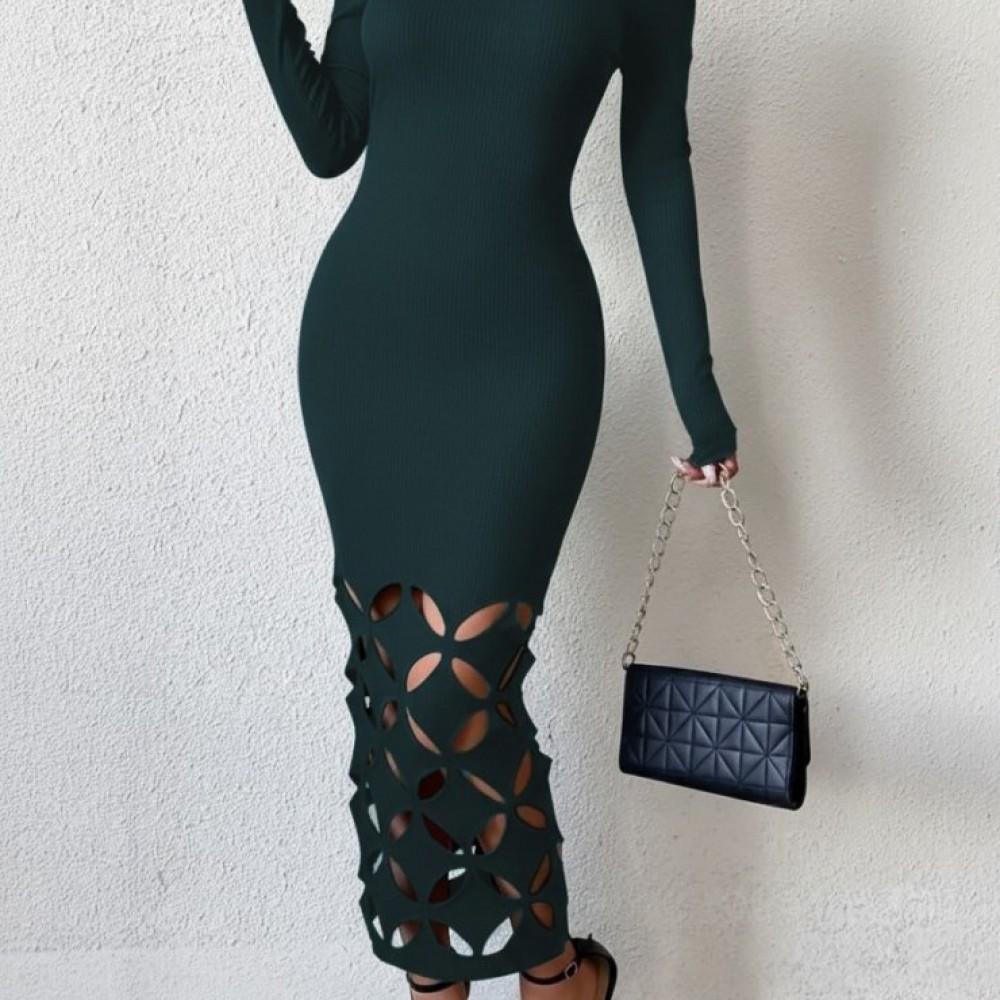 Kadın Madonna Yaka Uzun Kollu Lazer çiçek Kesim Detaylı Uzun Ithal Kre
