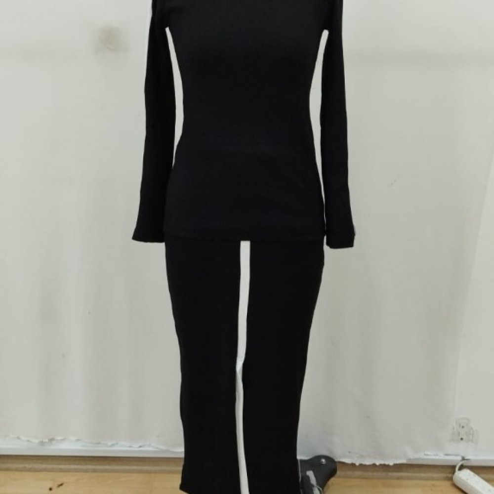 Kadın Uzun Kollu Bisiklet Yaka Kaşkorse Bluz Ve Yırtmaçlı Etek Ikili T