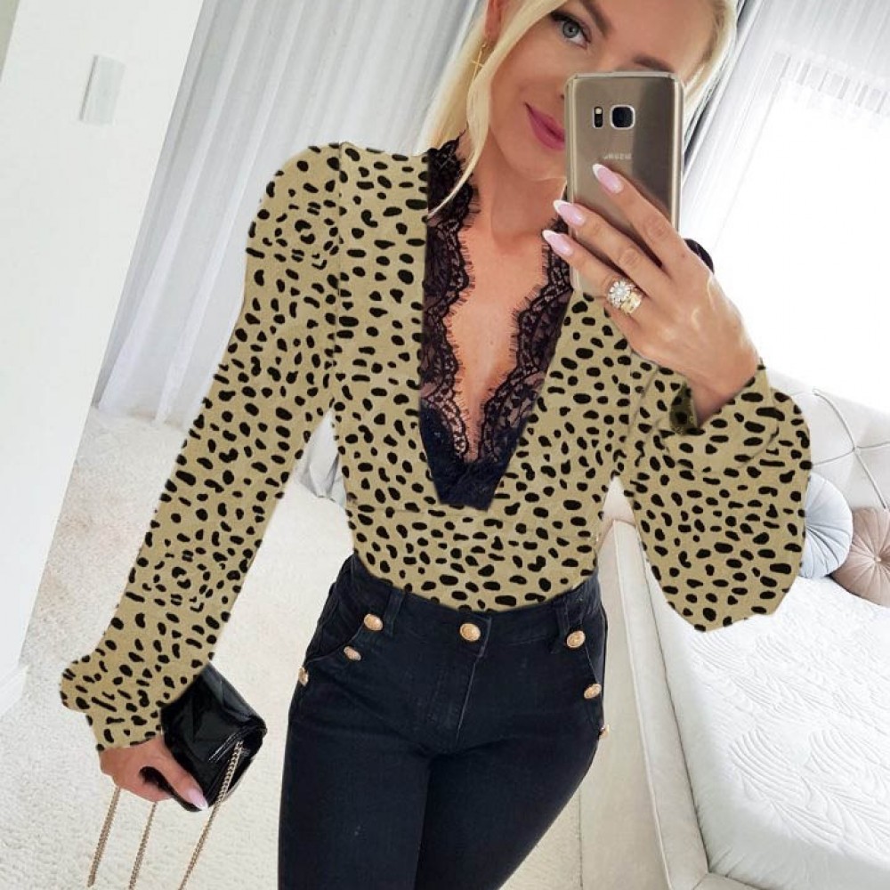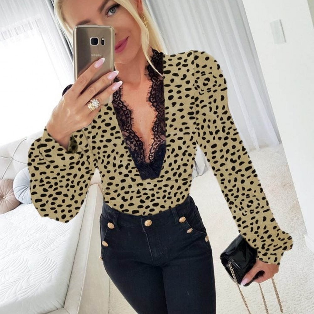 K61230-SIYAH LEOPAR BLUZ