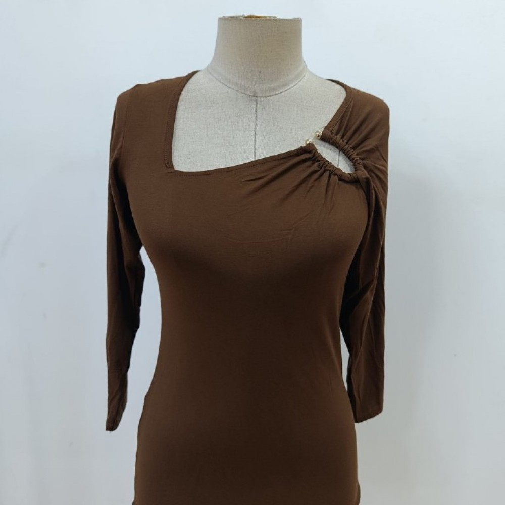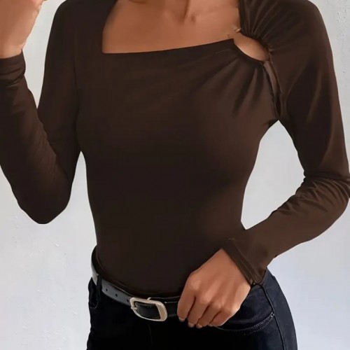 Kadın Uzun Kollu Yakadan Halka Detaylı Viskon Bluz