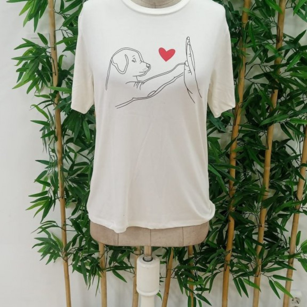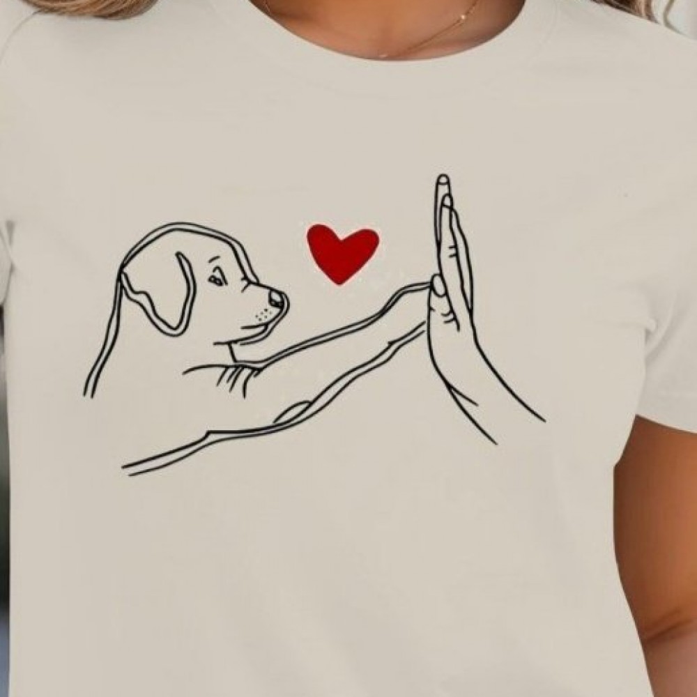 Kadın Kısa Kollu Bisiklet Yaka Köpek Baskılı Viskon Bluz