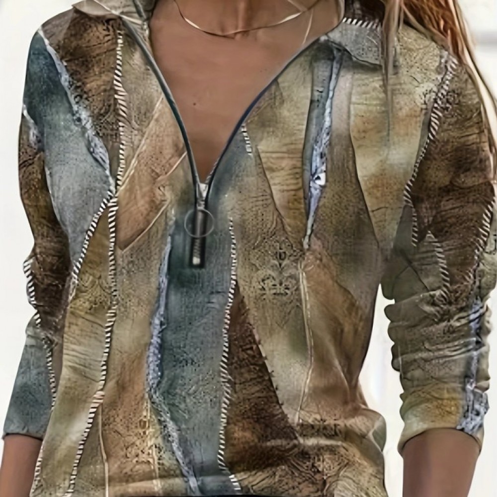 Kadın Uzun Kollu önden Fermuarlı Iki Iplik Bluz